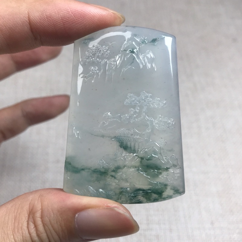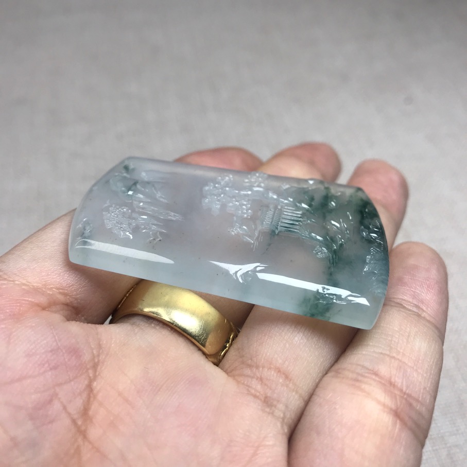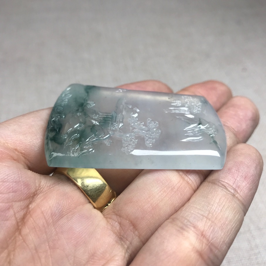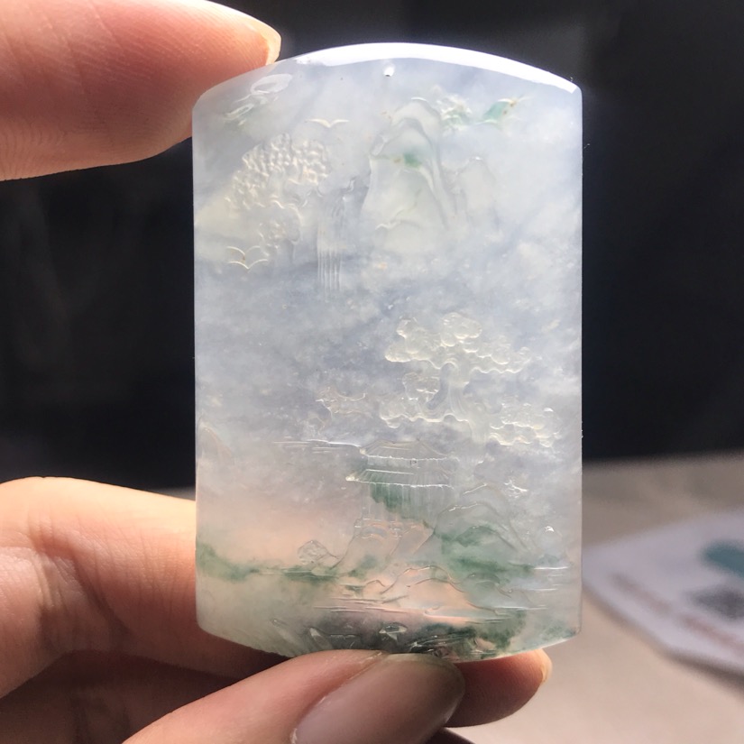 • [名  称] 糯冰种飘花翡翠山水意境吊坠