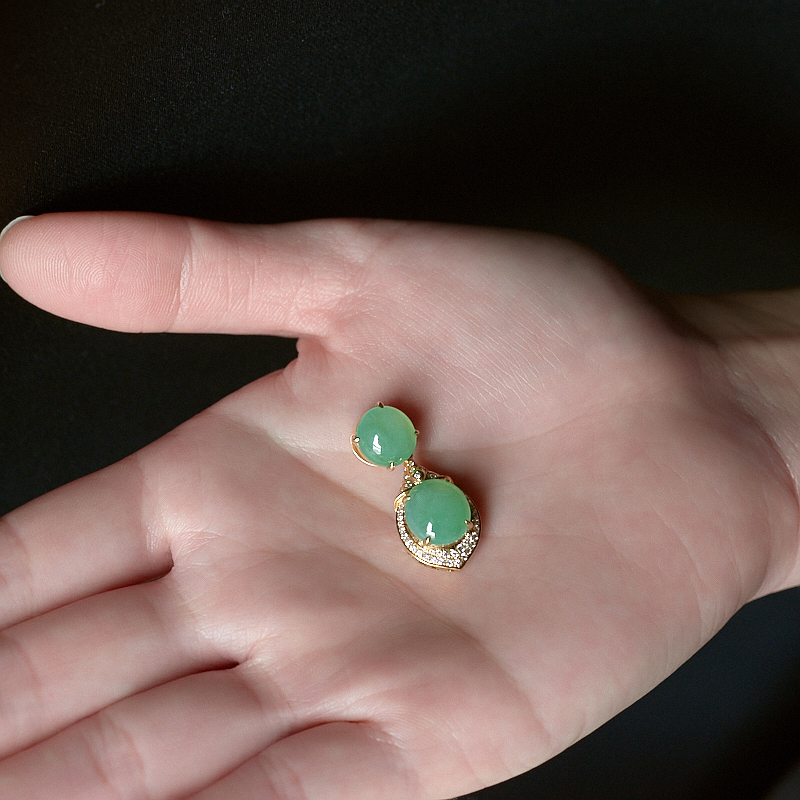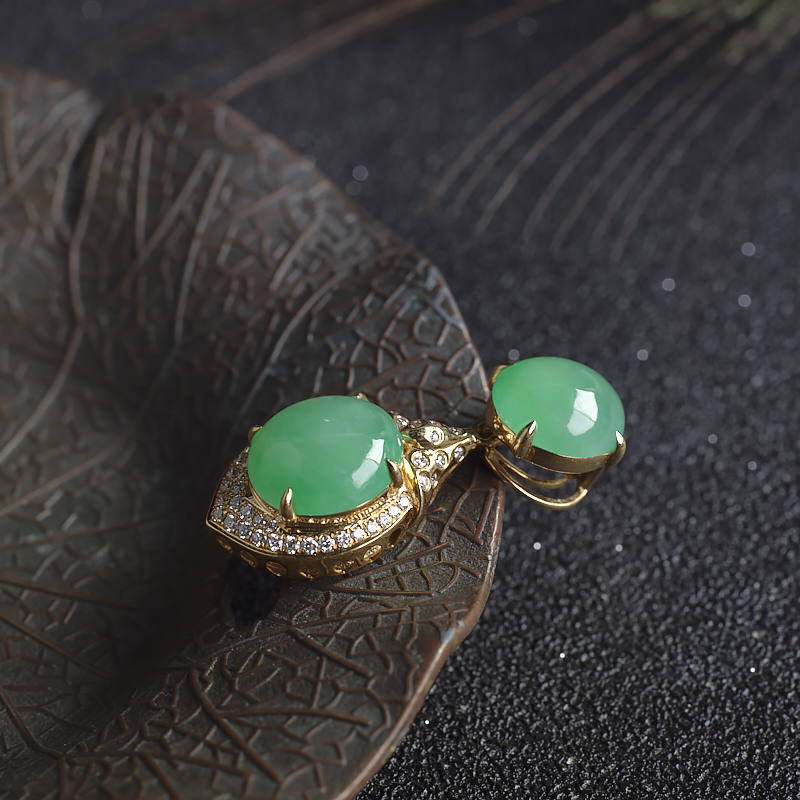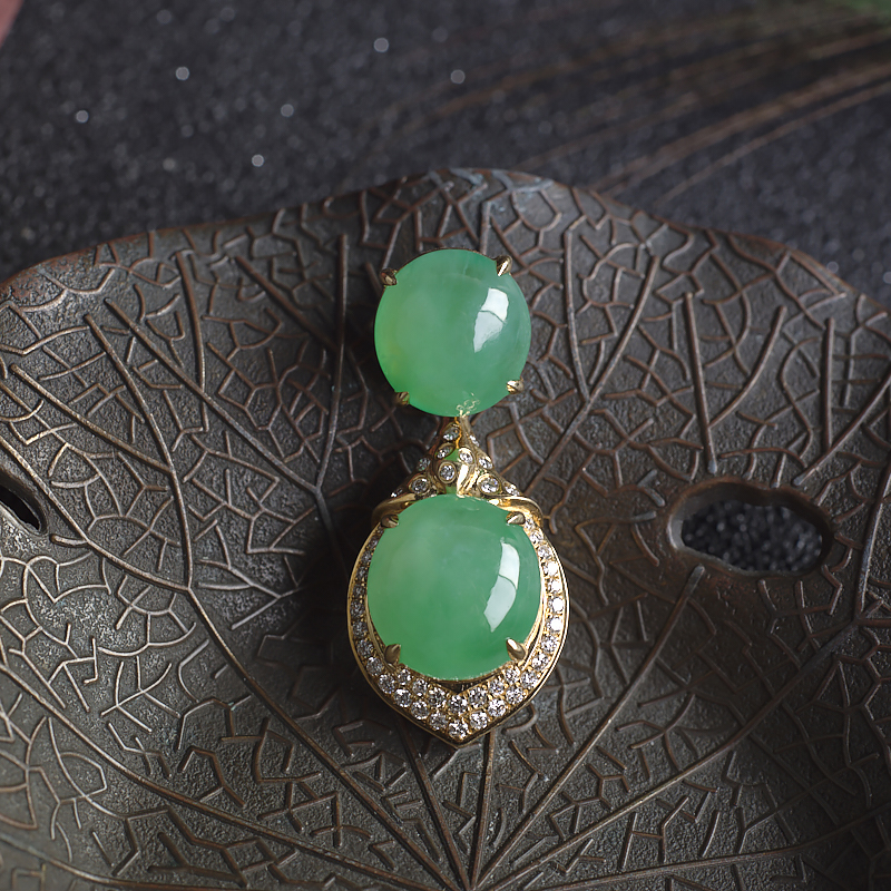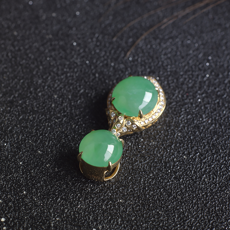 • [名  称] 18K糯冰种豆绿翡翠吊坠