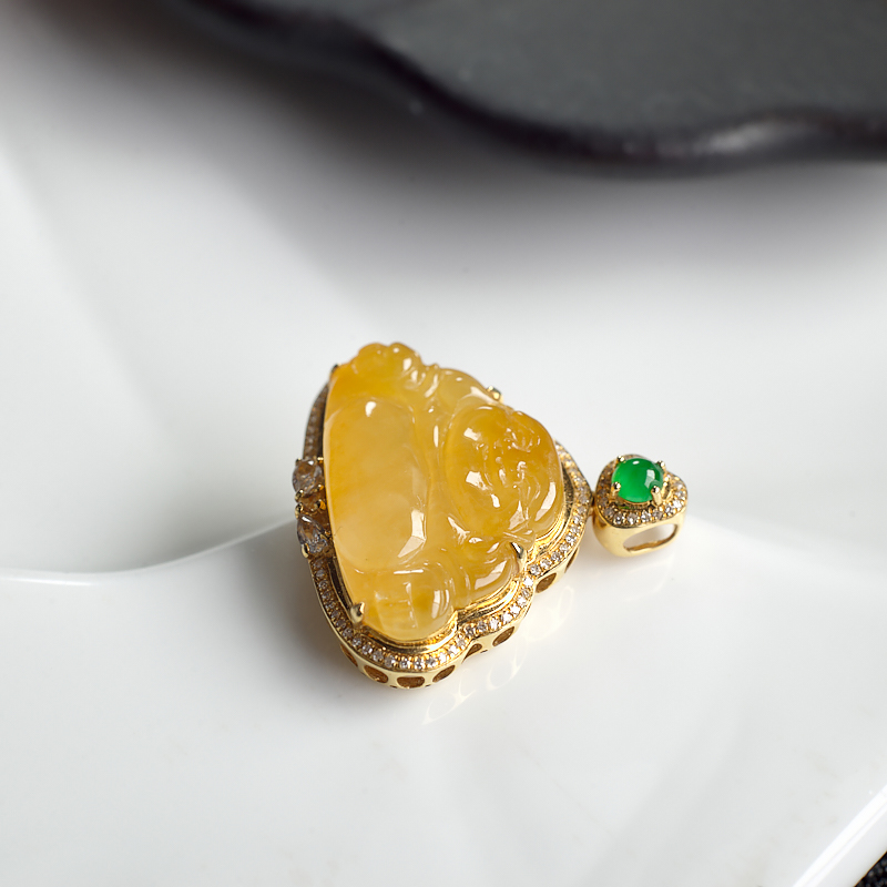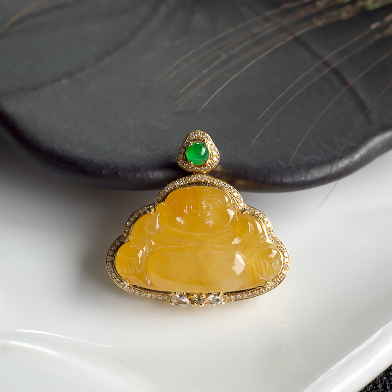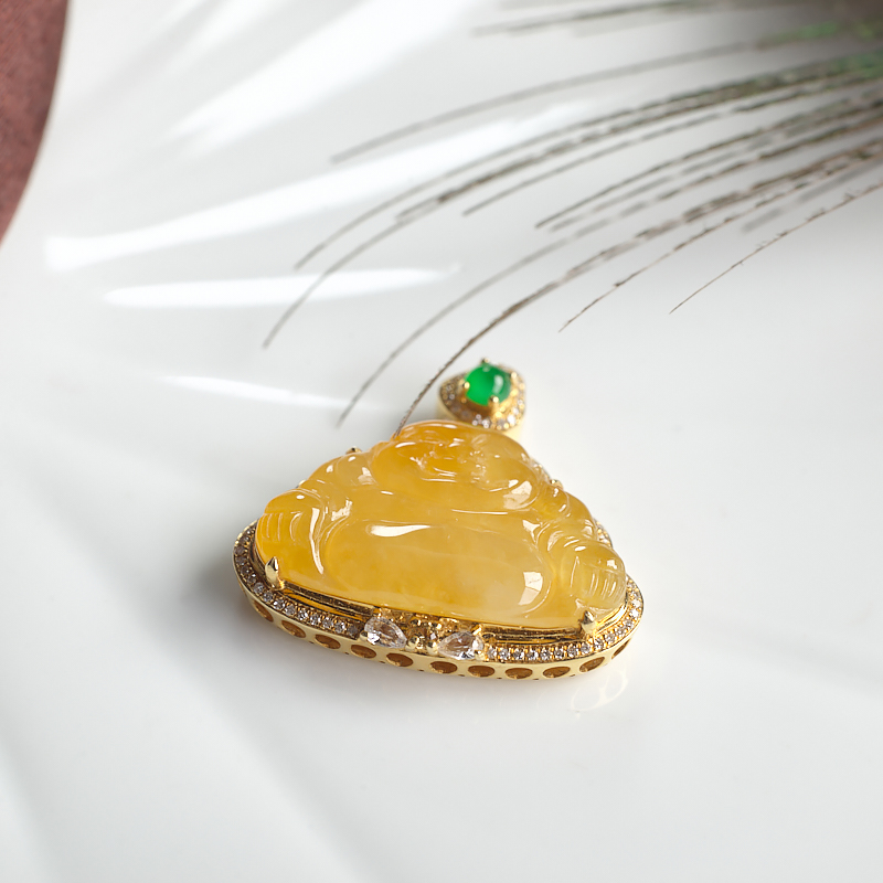 • [名  称] 18K糯冰种黄翠弥勒佛吊坠