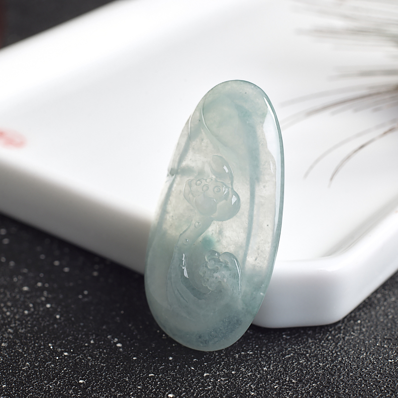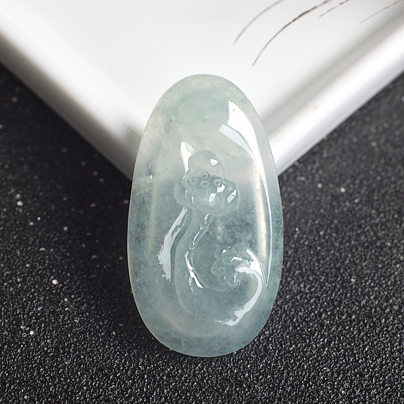 • [名  称] 糯冰种淡晴水翡翠莲花吊坠