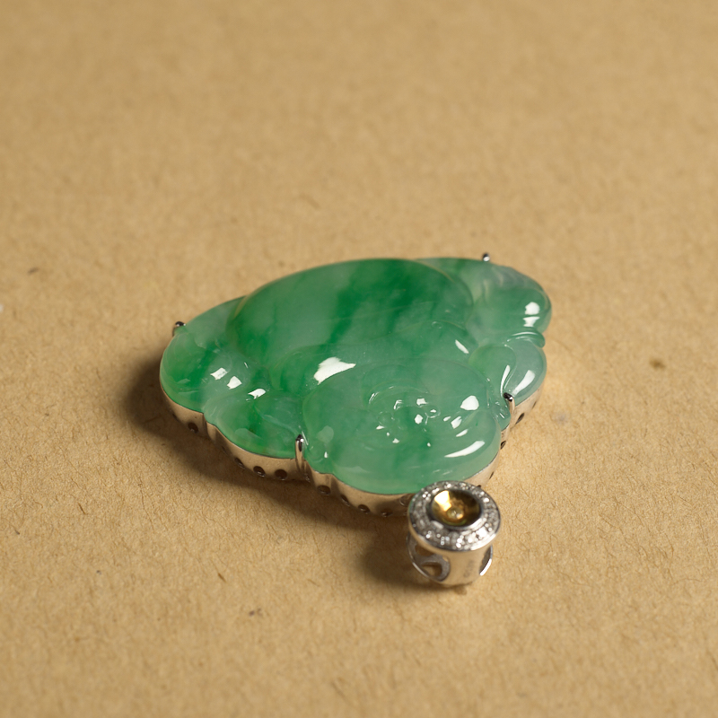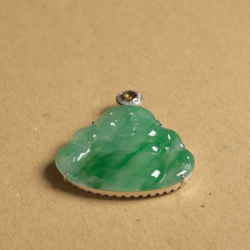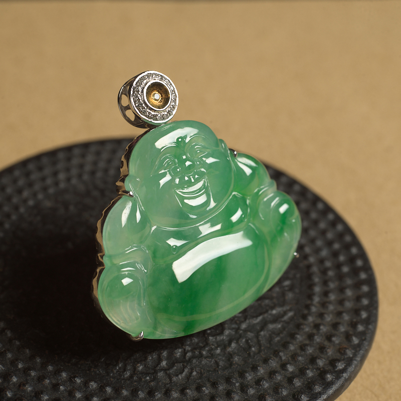 • [名  称] 18K糯冰种飘翠翡翠弥勒佛吊坠