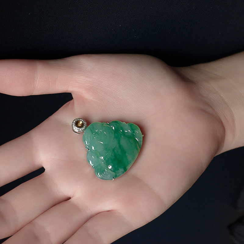 • 18K糯冰种飘翠翡翠弥勒佛吊坠