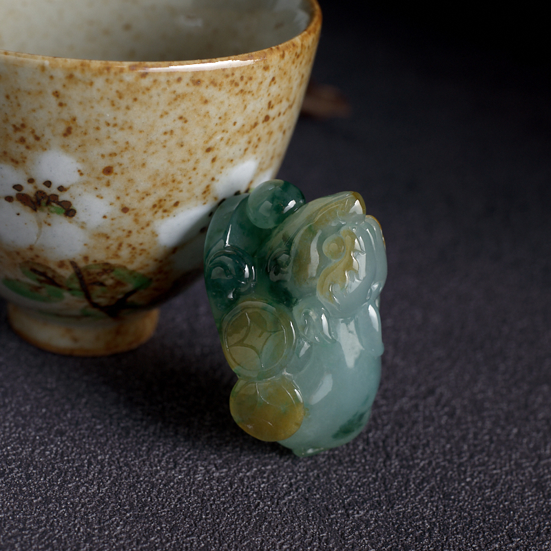 • 糯冰种飘花翡翠三脚金蟾吊坠