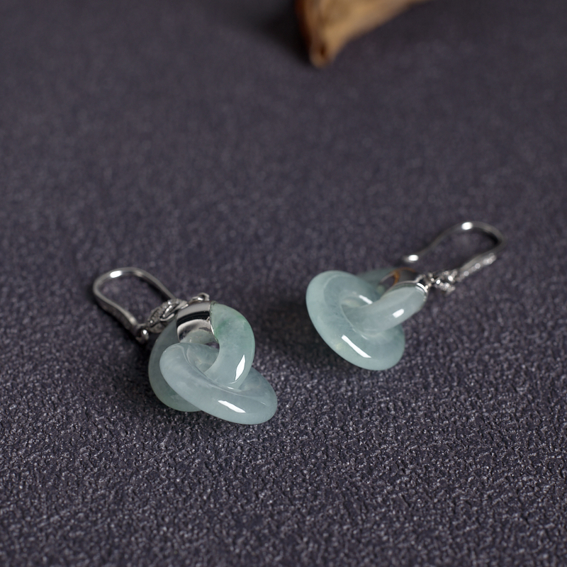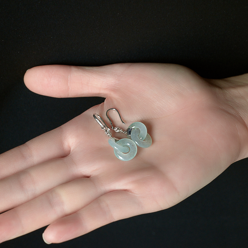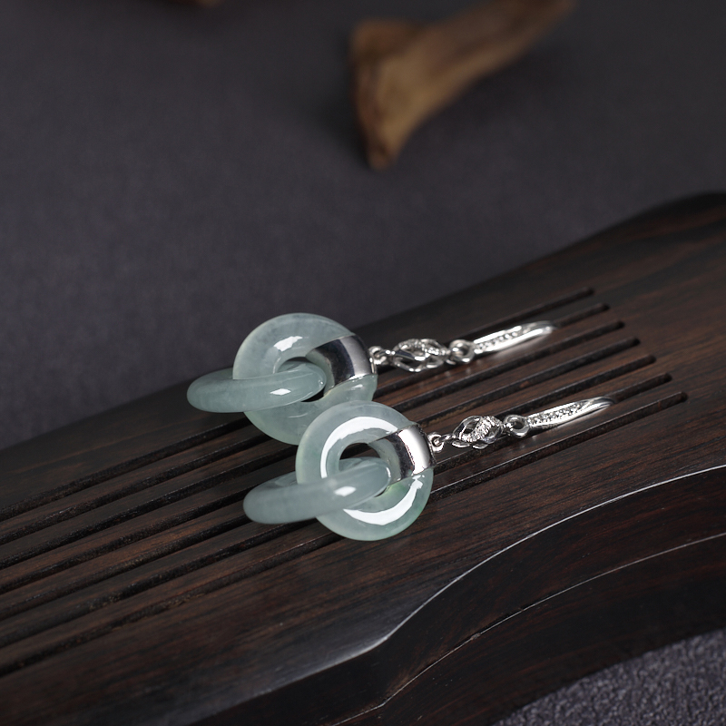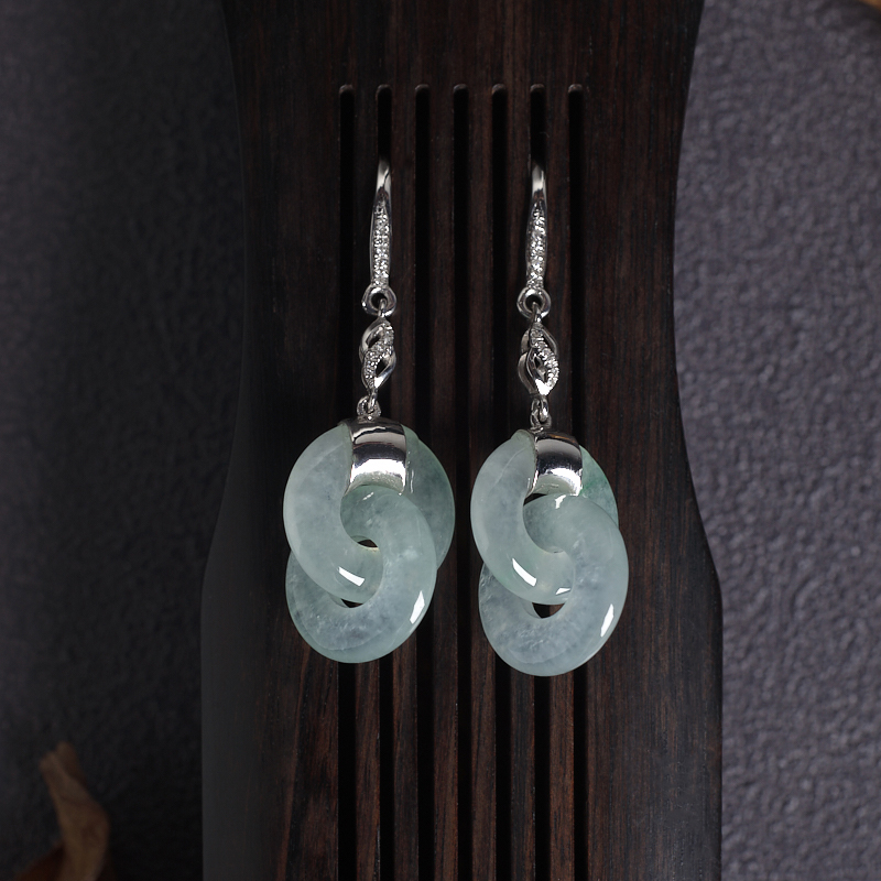 • [名  称] 18K糯冰种浅绿翡翠耳环