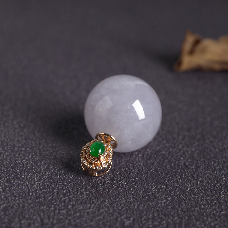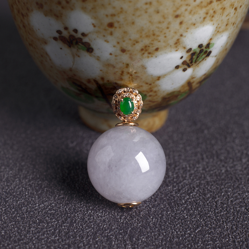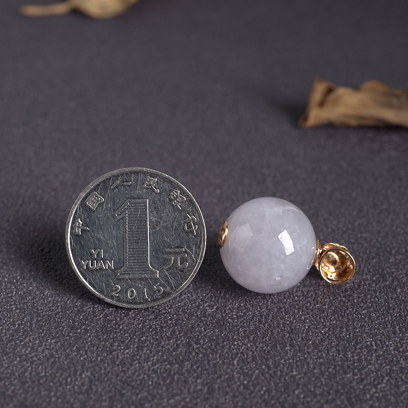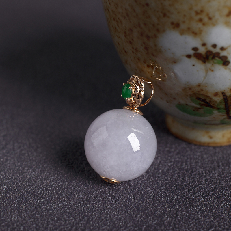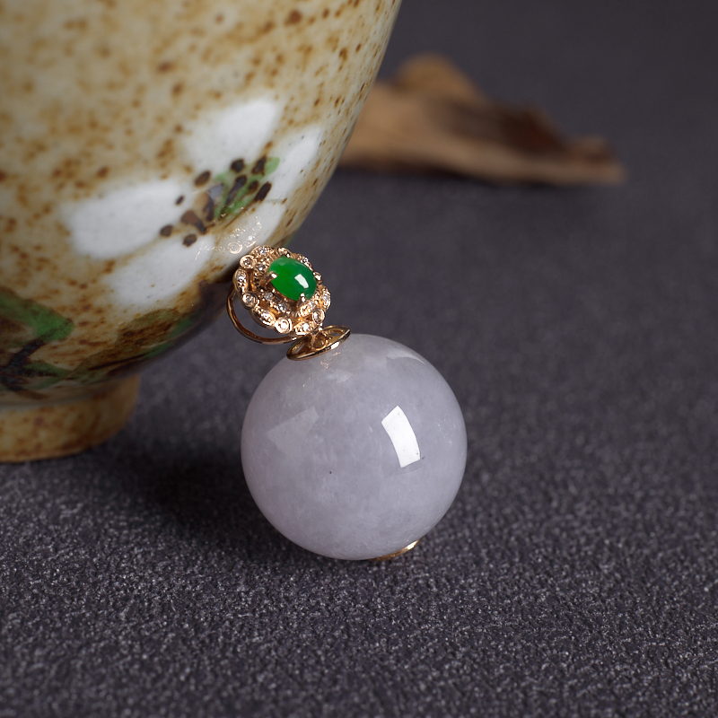 • [名  称] 18K糯冰种浅紫色翡翠圆珠吊坠