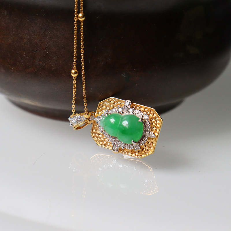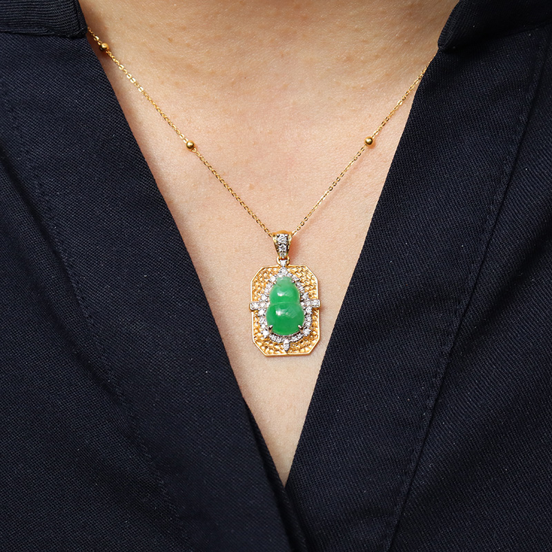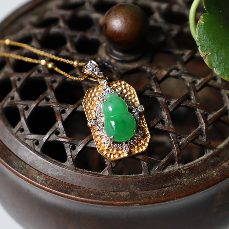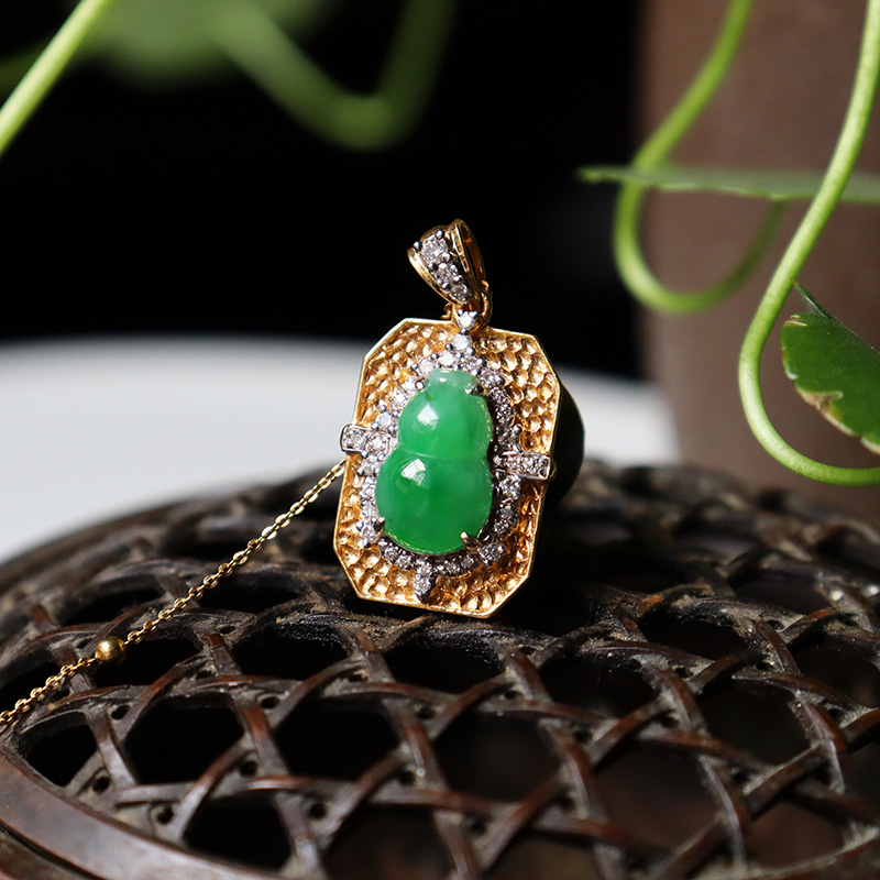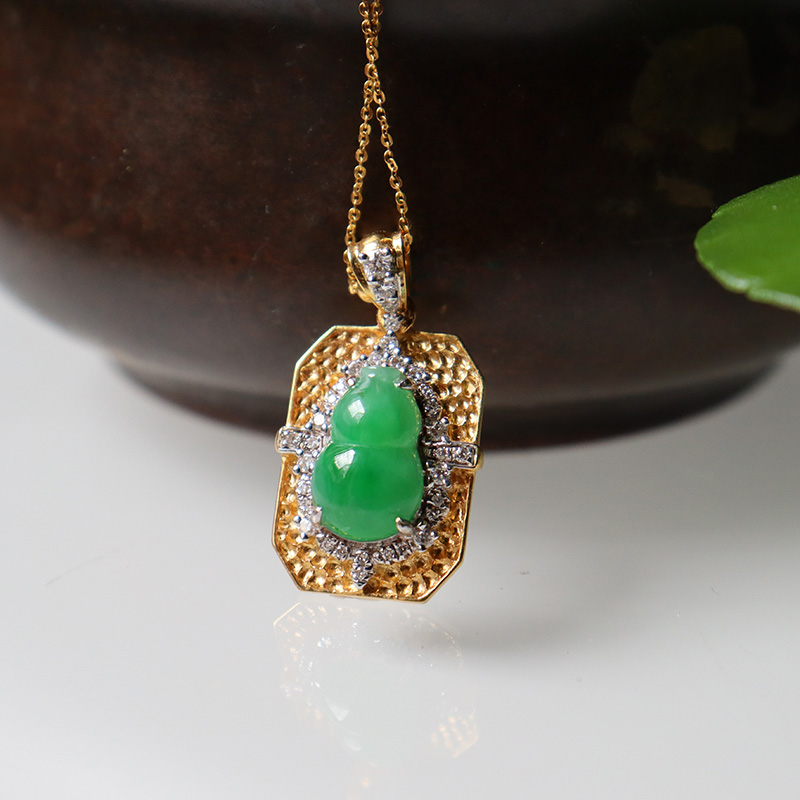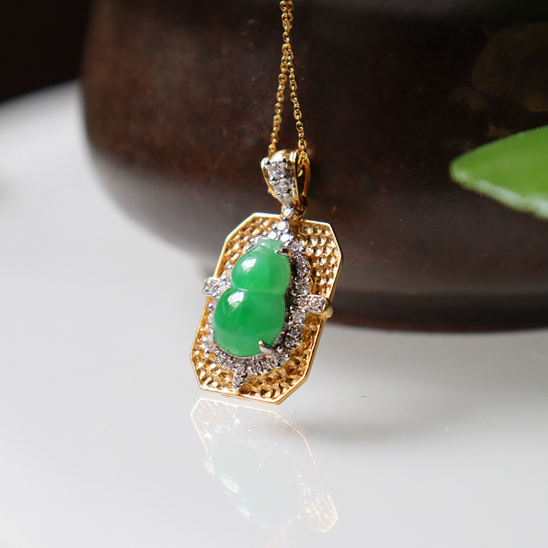 • 18k糯冰种翠绿翡翠葫芦吊坠