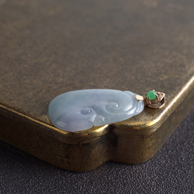• [名  称] 18K糯冰种春带彩翡翠如意吊坠