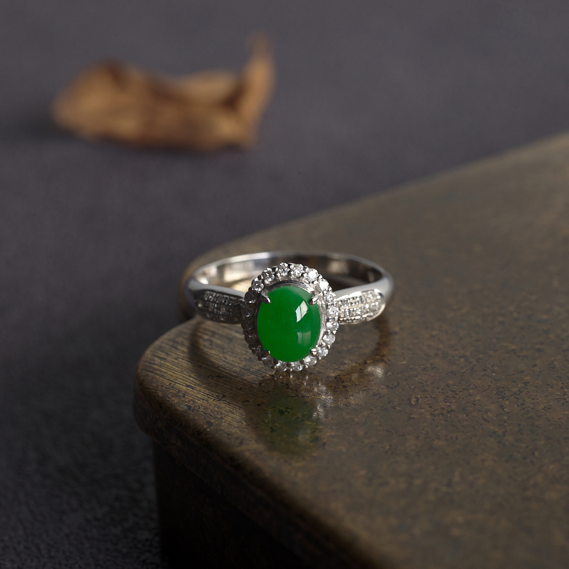 • [名  称] 18K糯冰种阳绿翡翠戒指