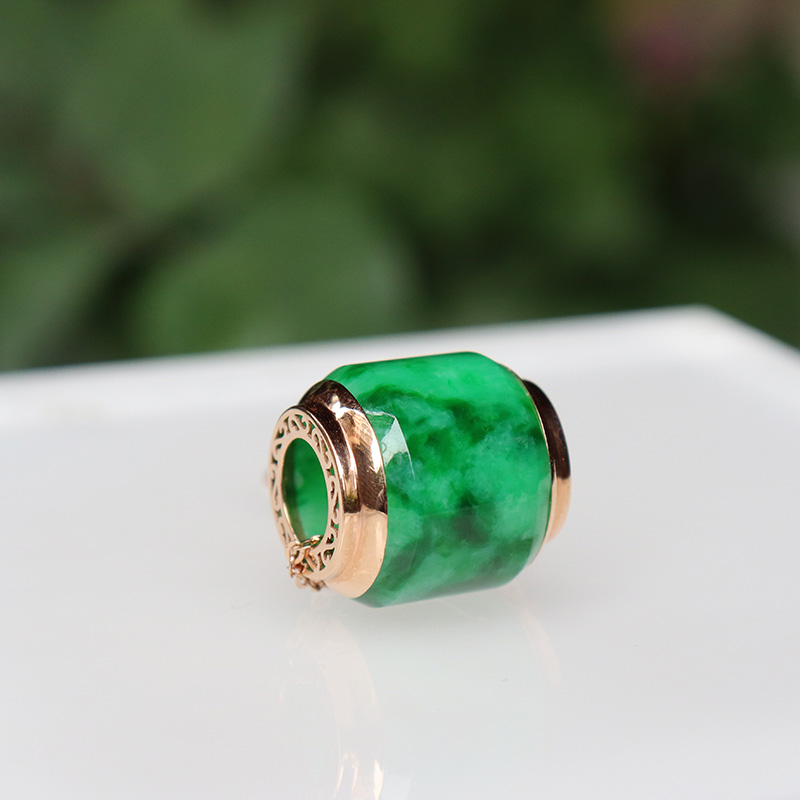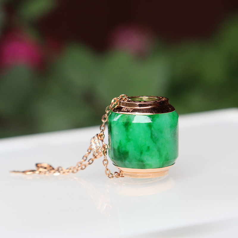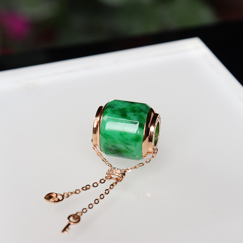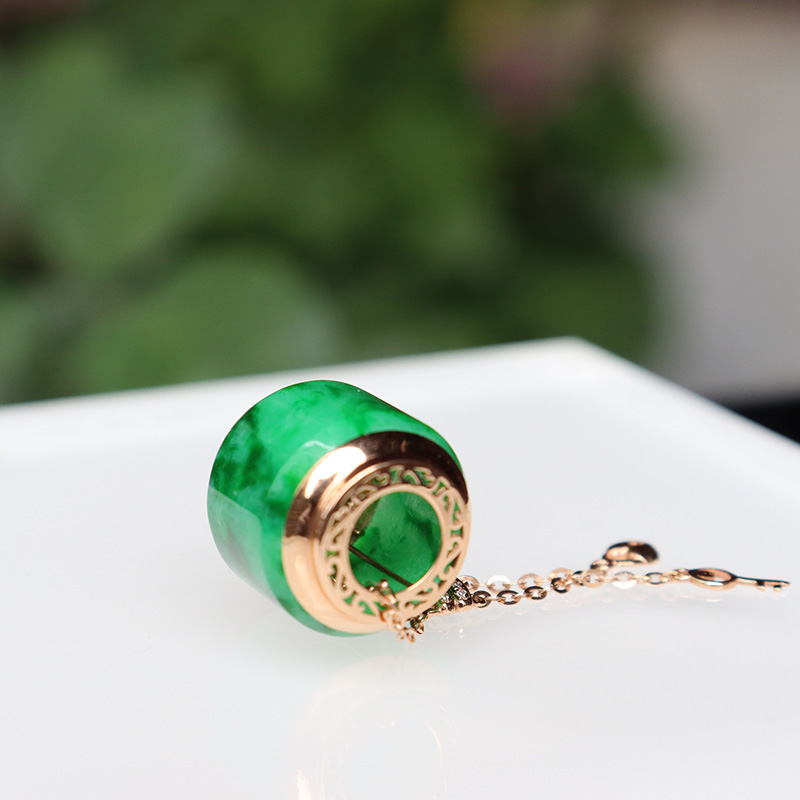 • 18k糯冰种翠绿翡翠路路通吊坠