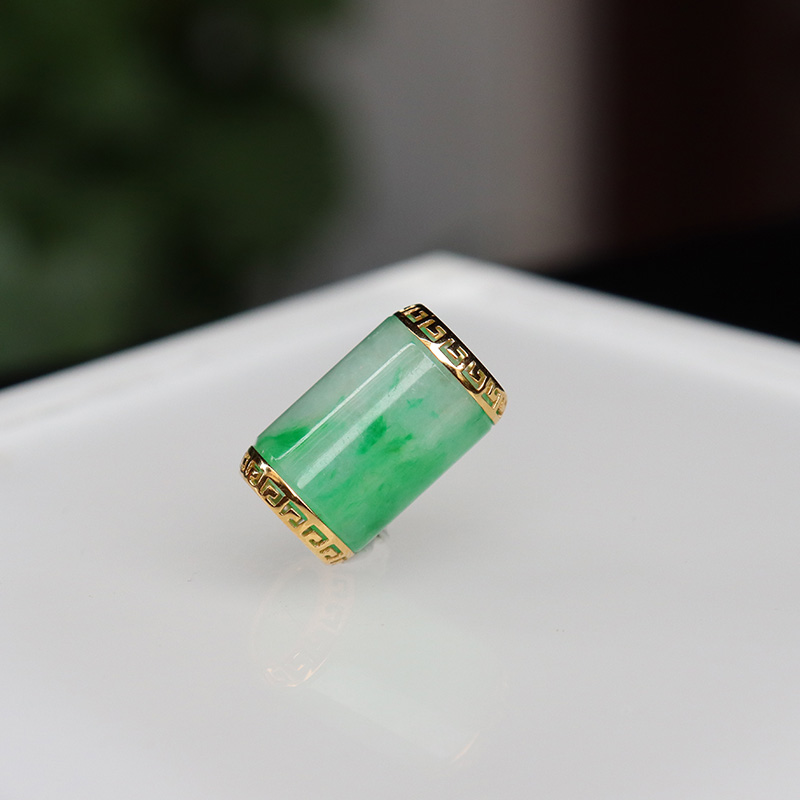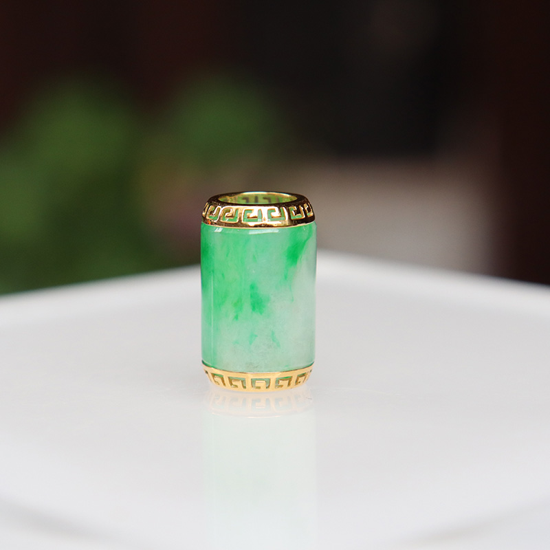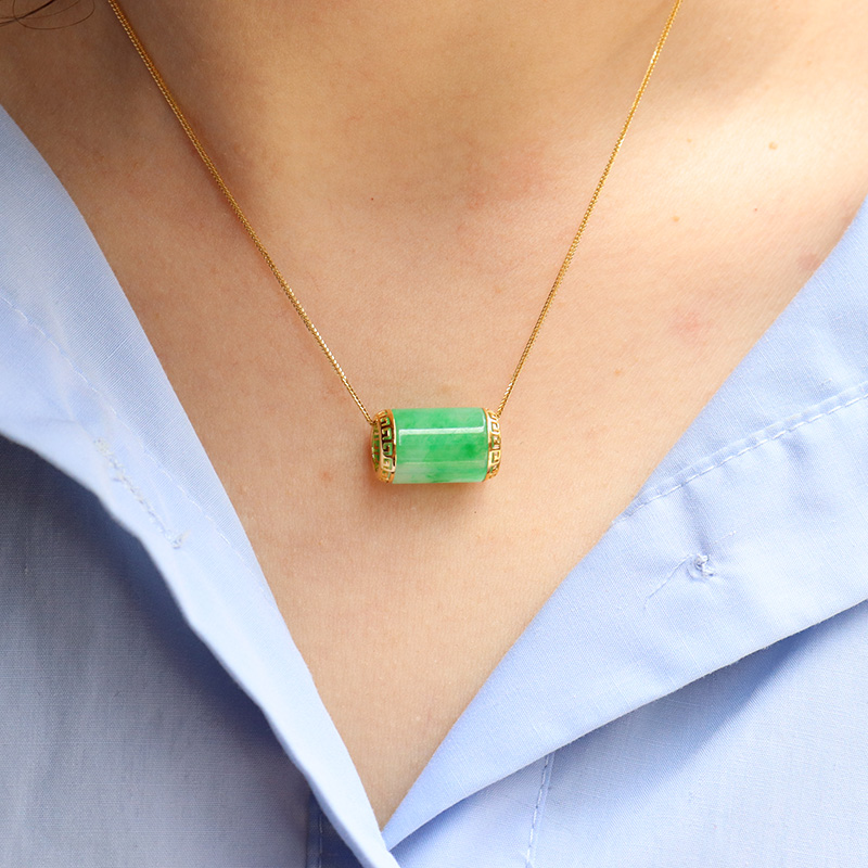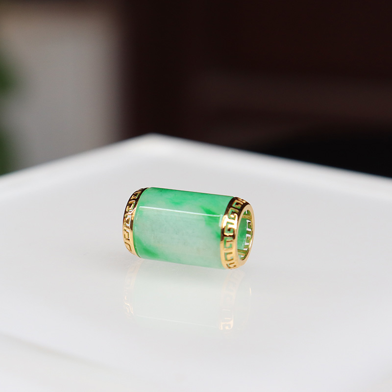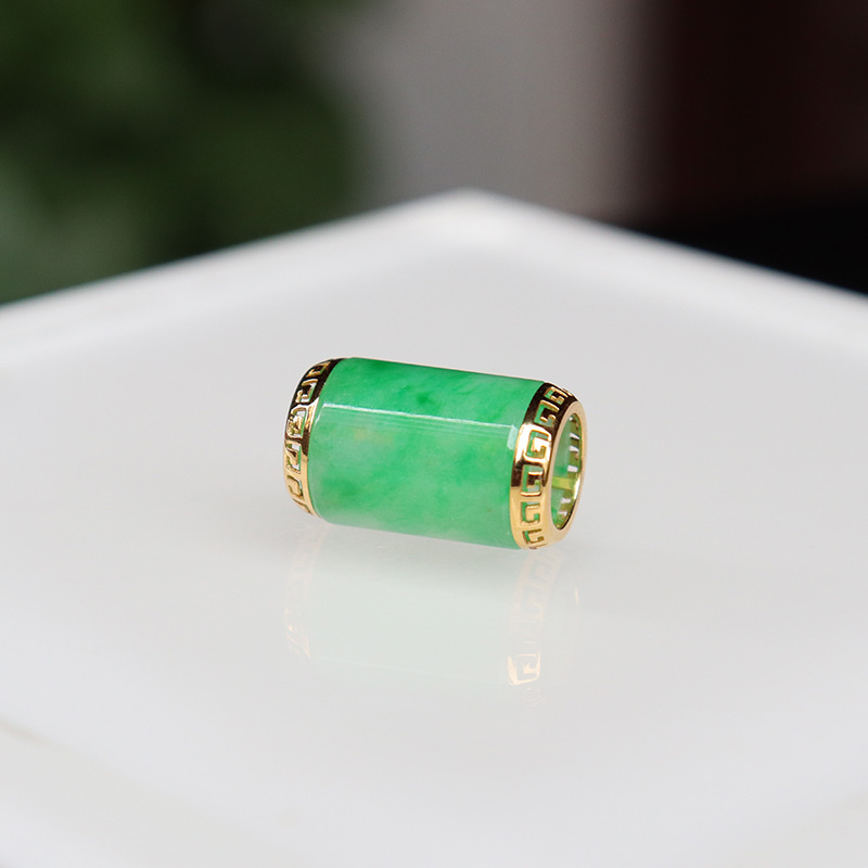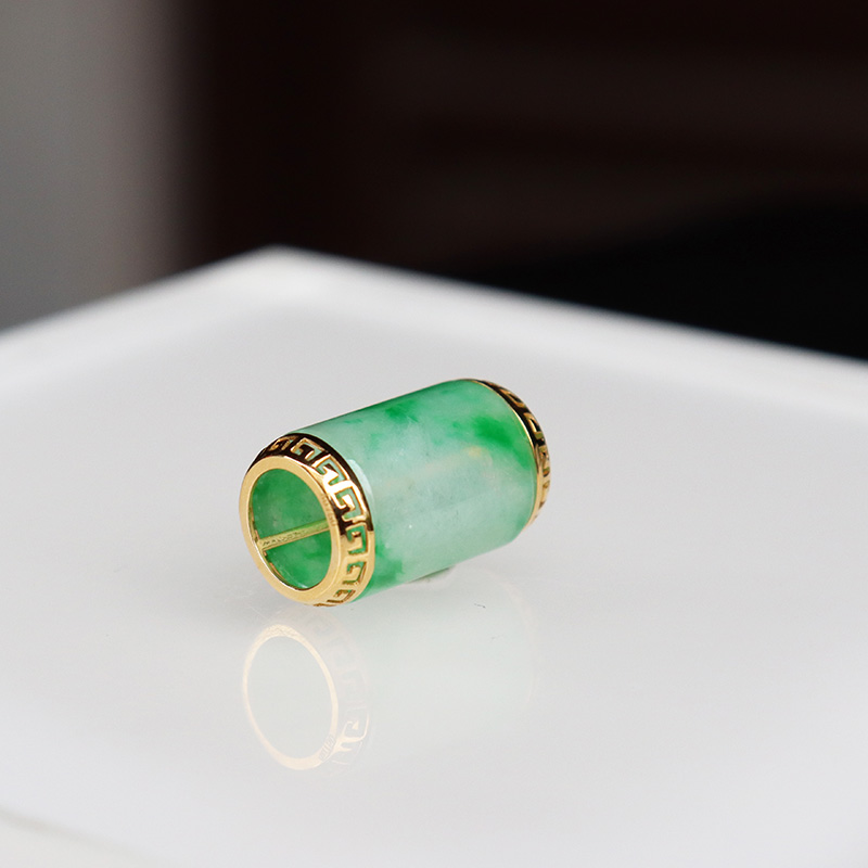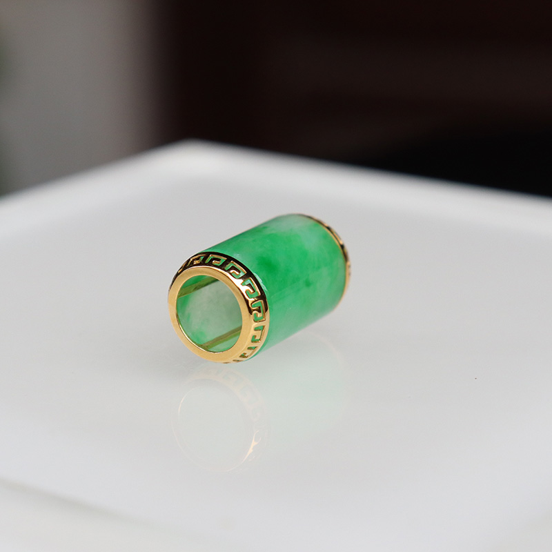 • 18k糯冰种翠绿翡翠路路通吊坠