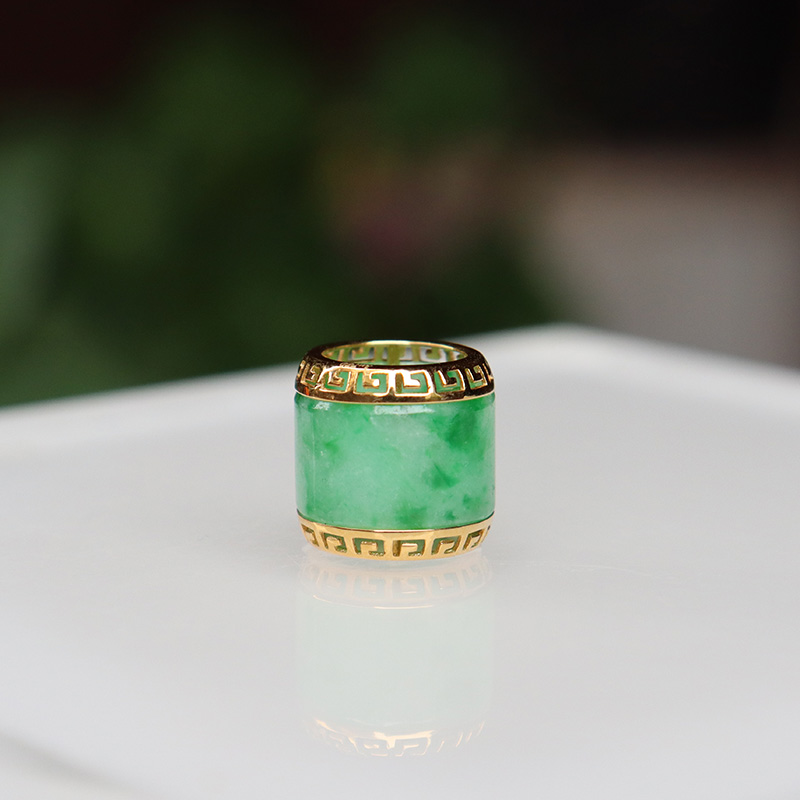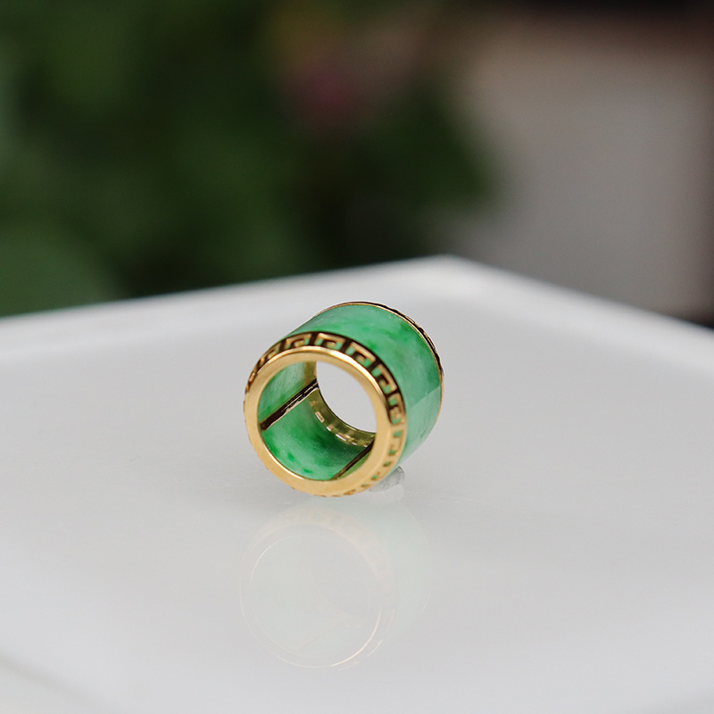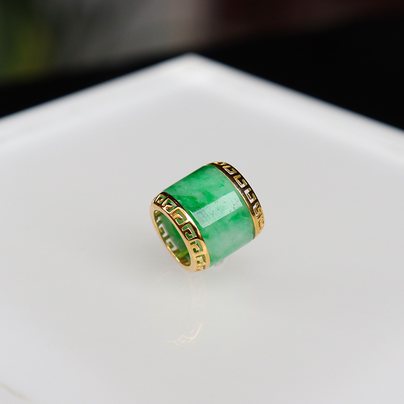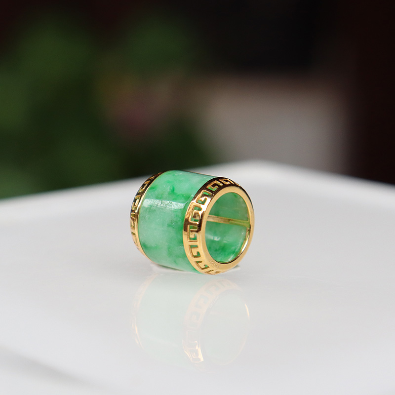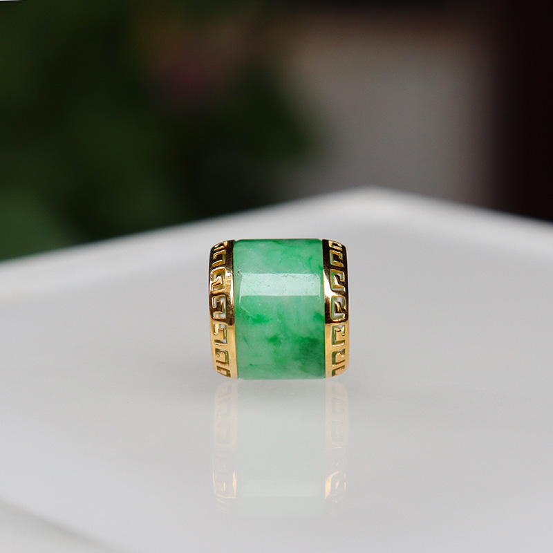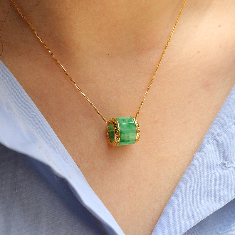 • 18k糯冰种翠绿翡翠路路通吊坠