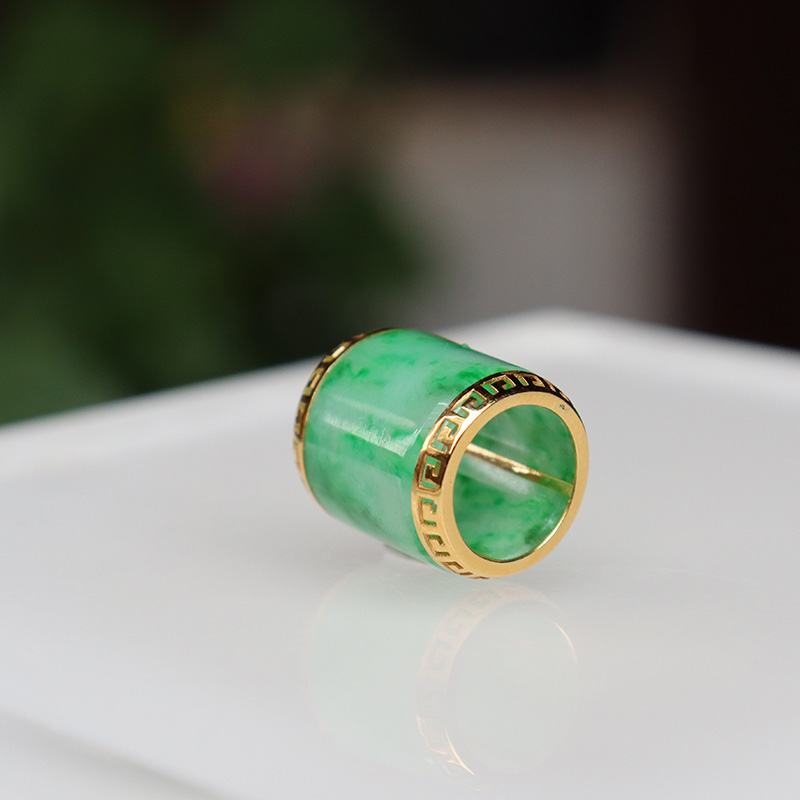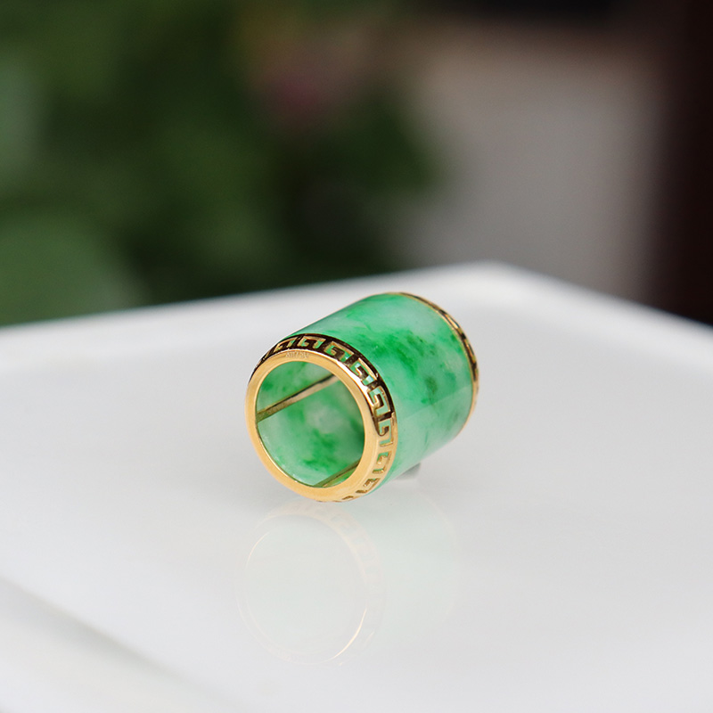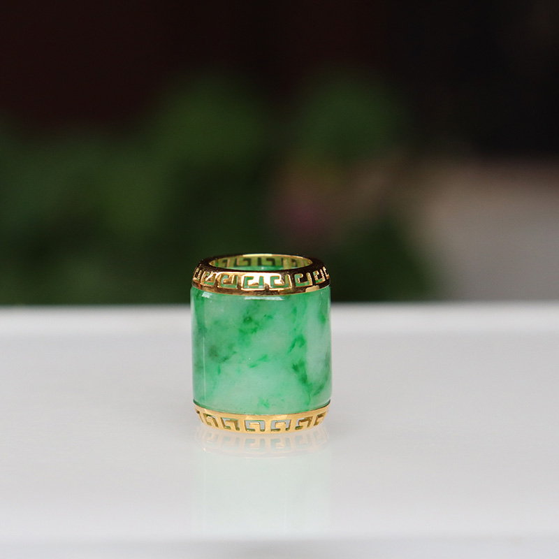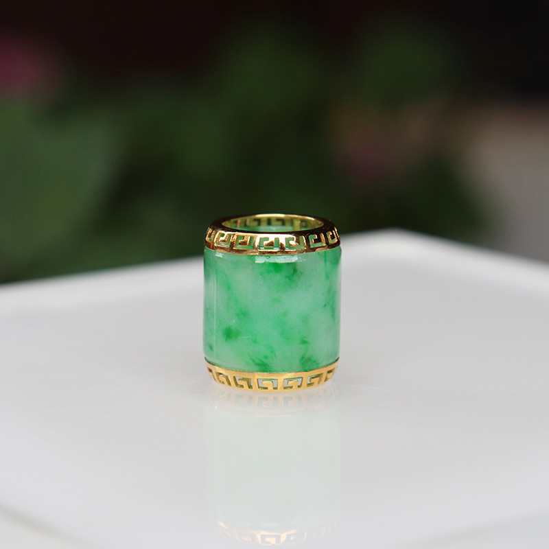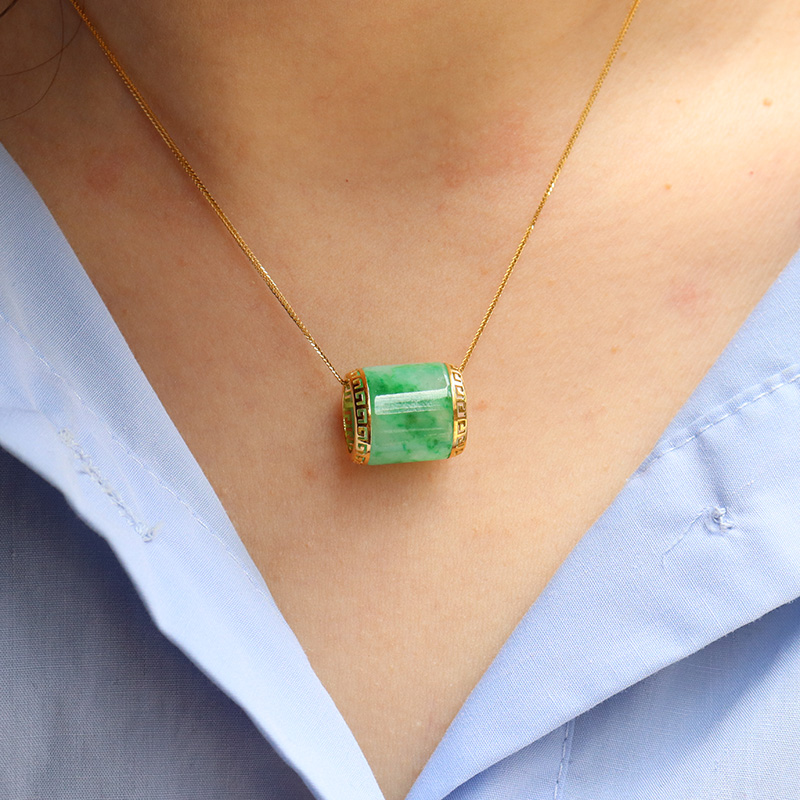 • 18k糯冰种翠绿翡翠路路通吊坠
