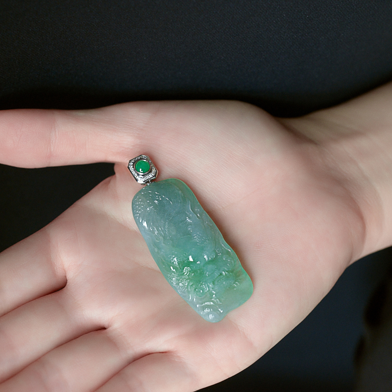 • 18K糯冰种飘翠翡翠辰龙吊坠