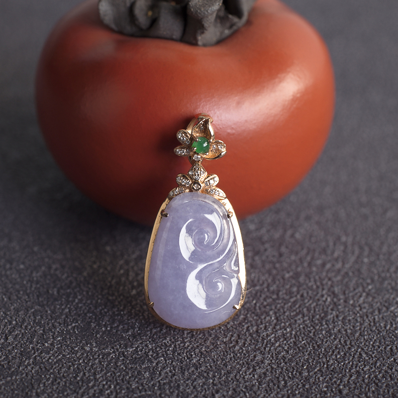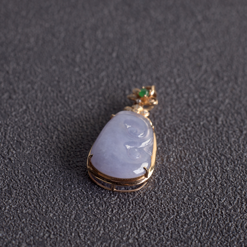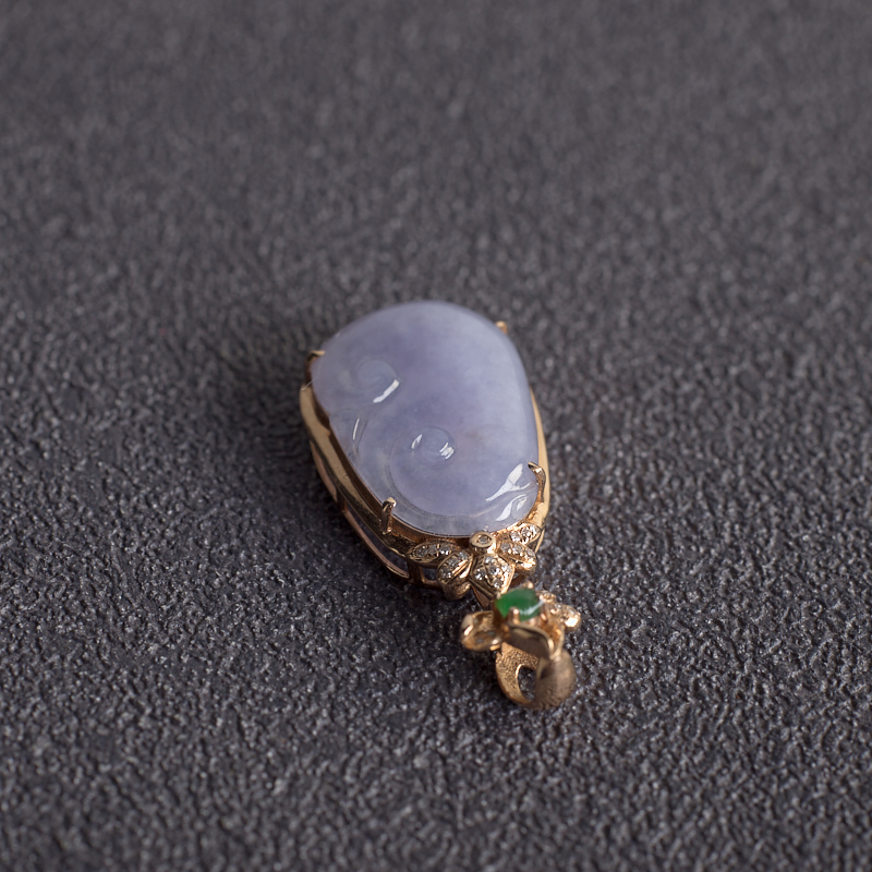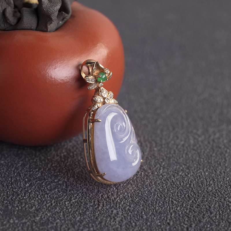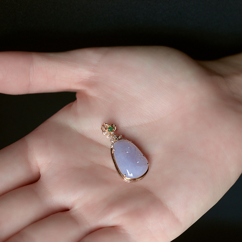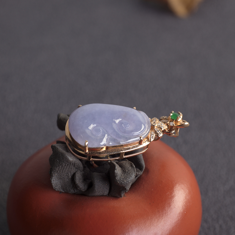 • 18K糯冰种紫罗兰翡翠如意吊坠