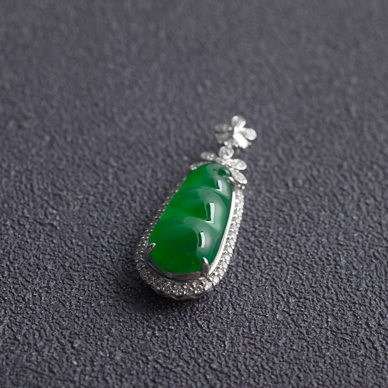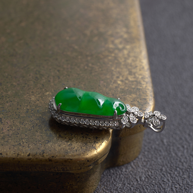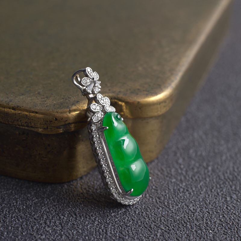 • [名  称] 18K糯冰种翠绿翡翠福豆吊坠
