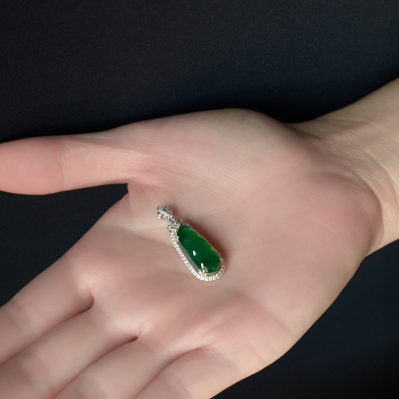 • 18K糯冰种翠绿翡翠福豆吊坠