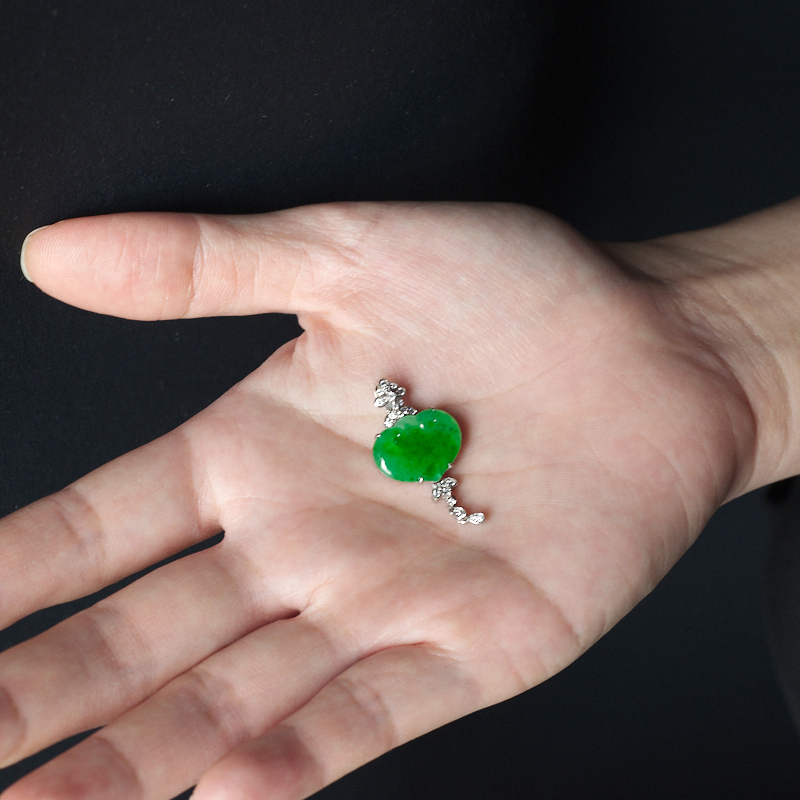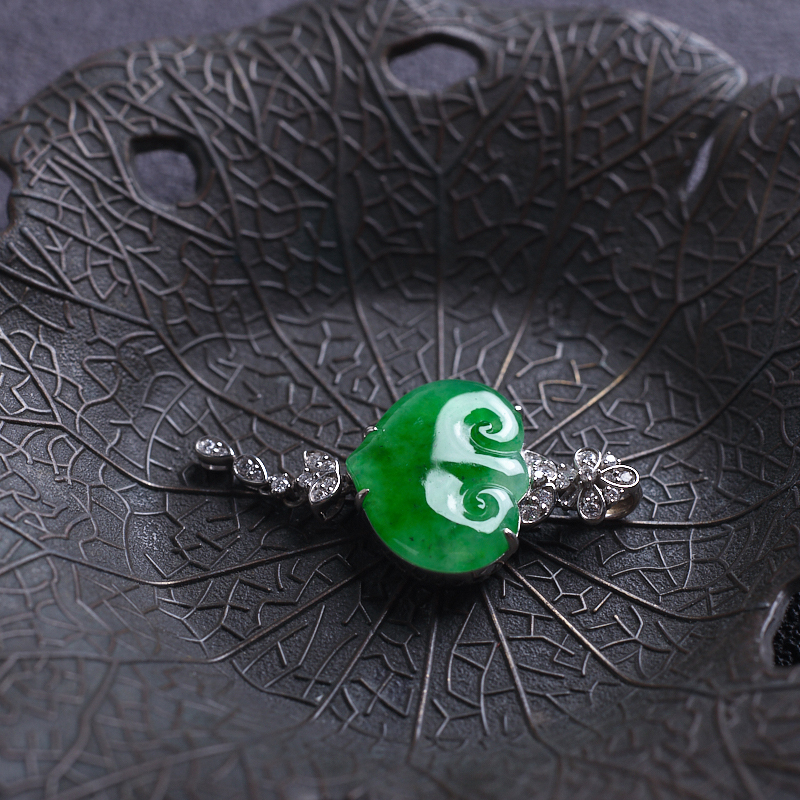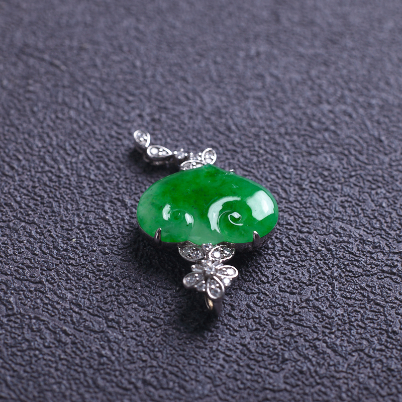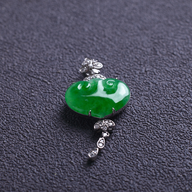• [名  称] 18K糯冰种翠绿翡翠如意吊坠
