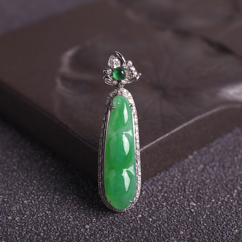 • [名  称] 18K糯冰种苹果绿翡翠福豆吊坠