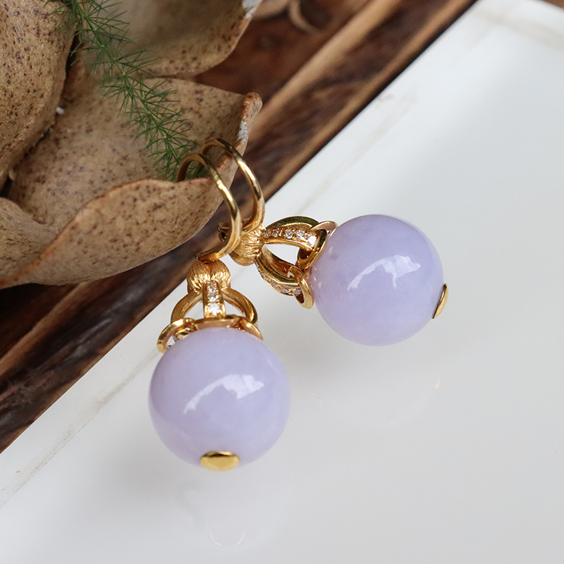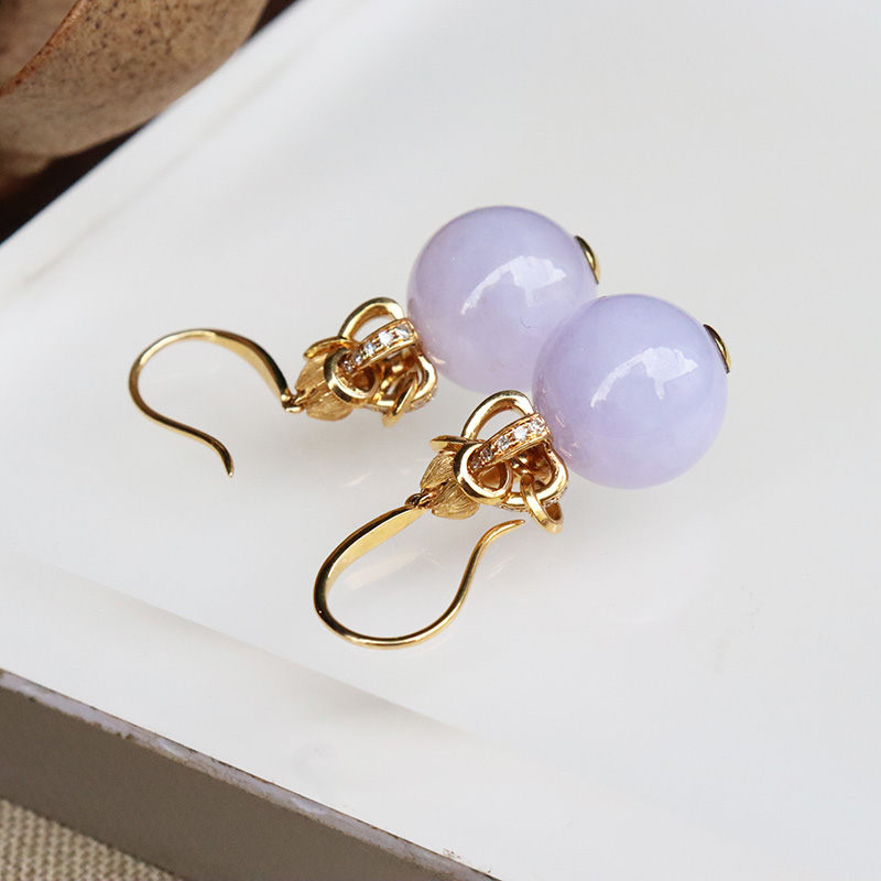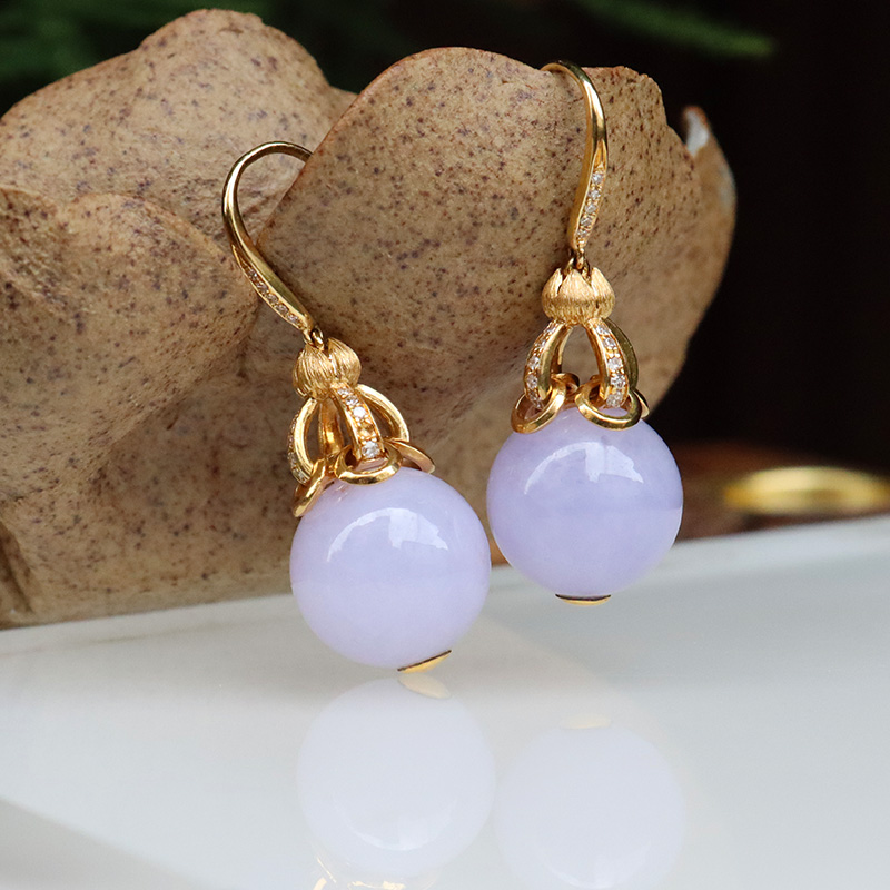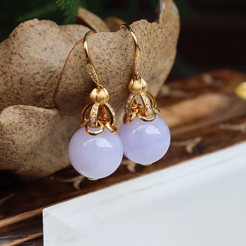 • 18k糯冰种紫罗兰翡翠耳坠