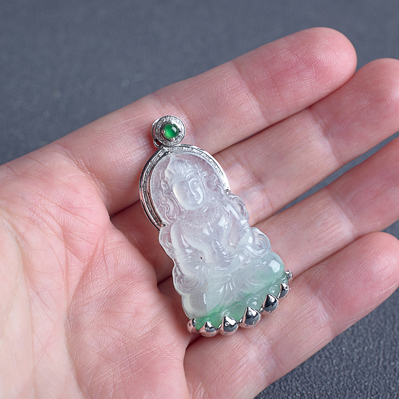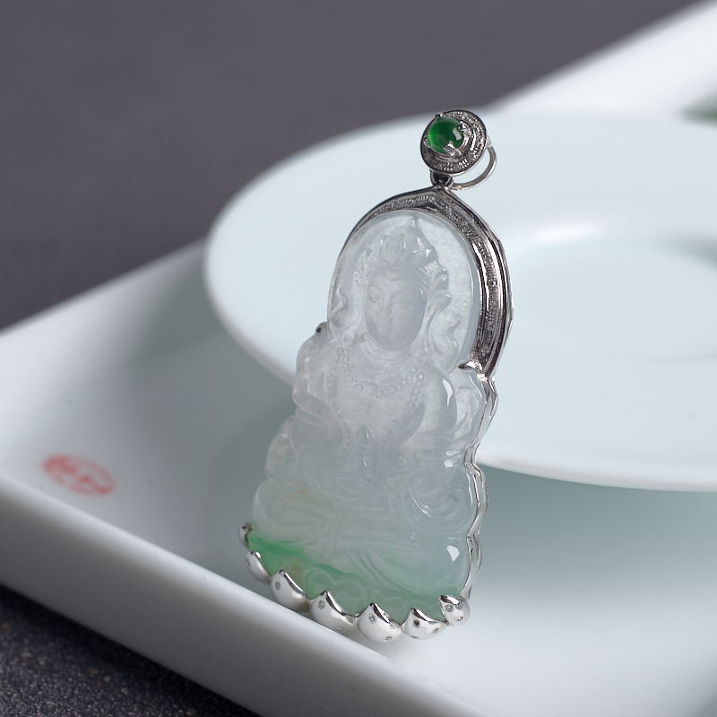 • [名  称] 18K糯冰种飘翠翡翠度母吊坠