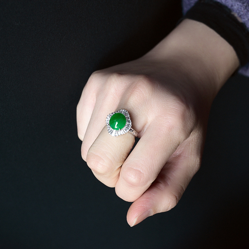 • [名  称] 18K糯冰种翠绿翡翠戒指