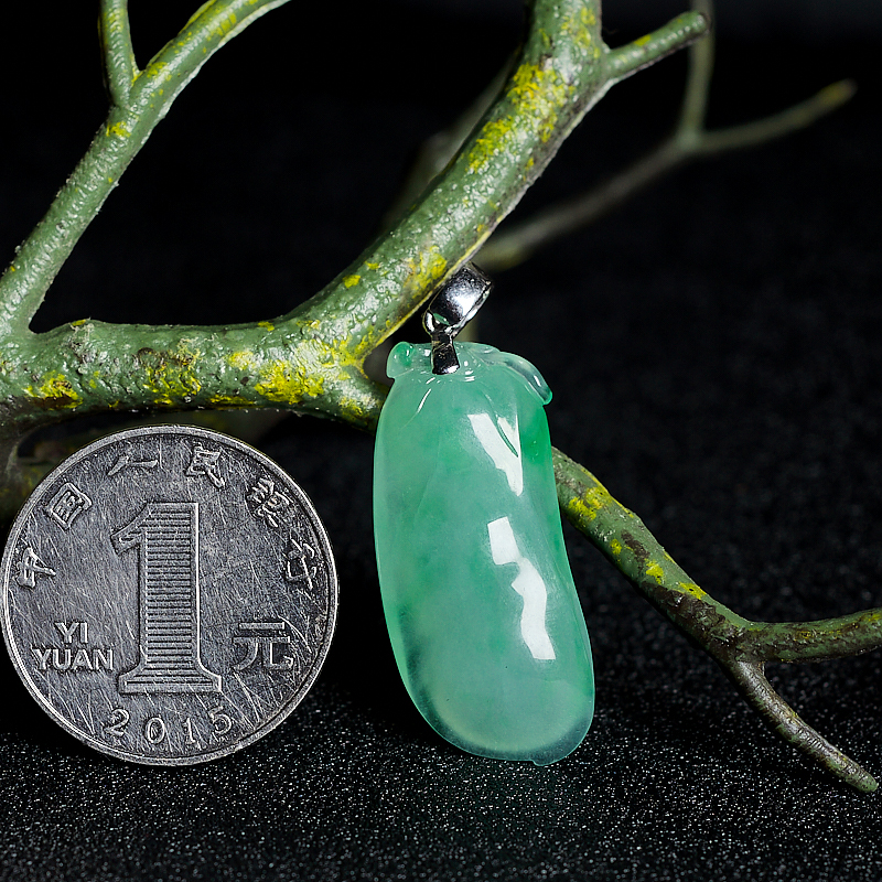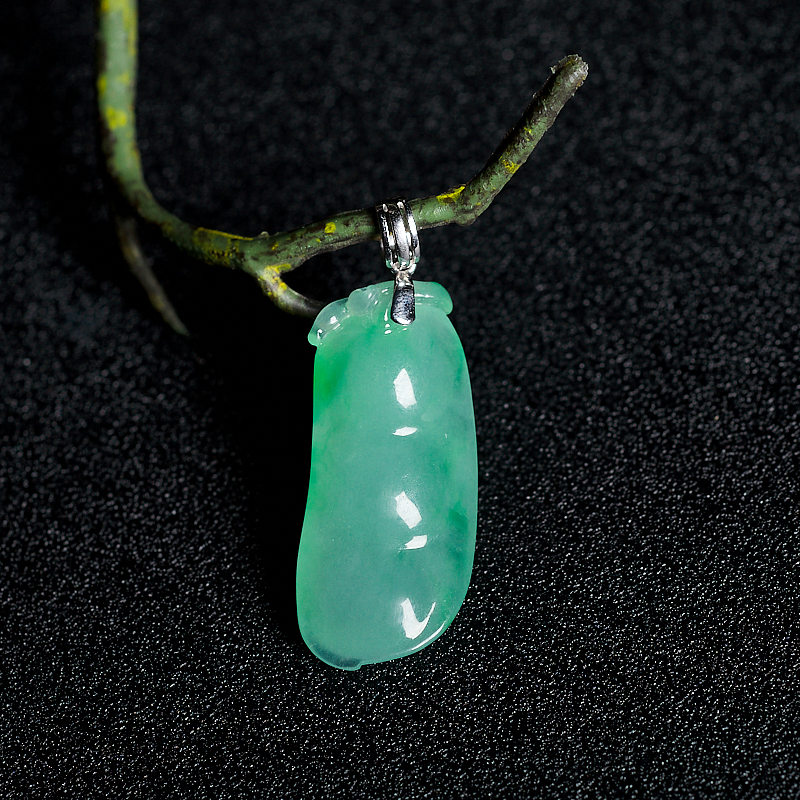 • [名  称] 18K糯冰种飘翠翡翠福豆吊坠