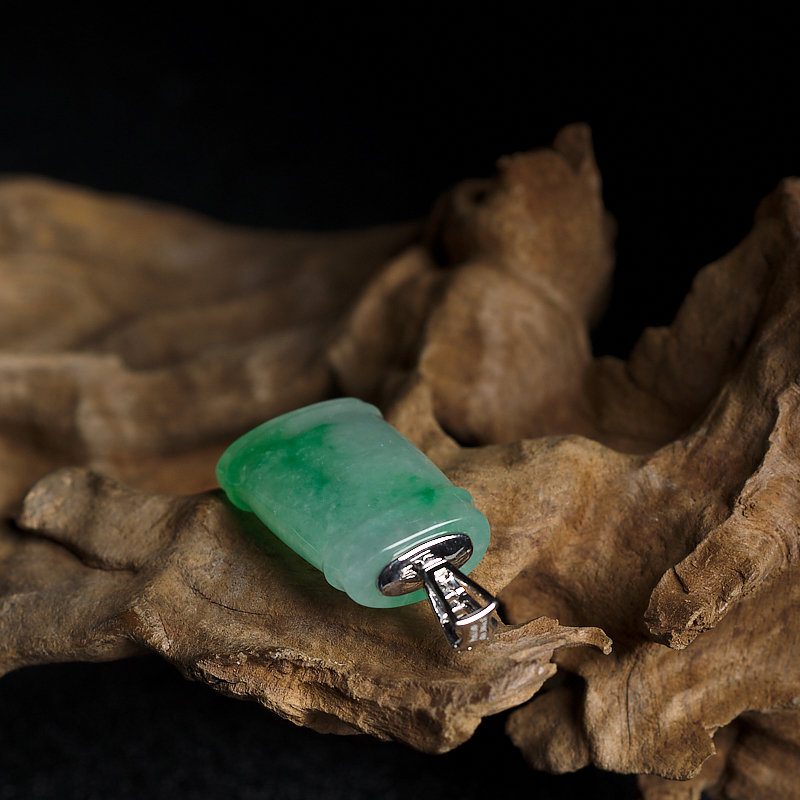 • 18K糯冰种飘翠翡翠节节高升吊坠
