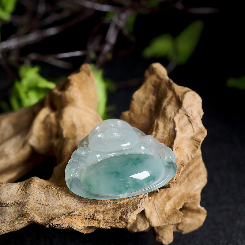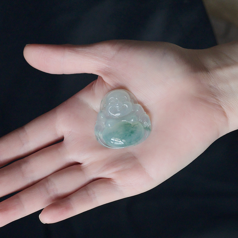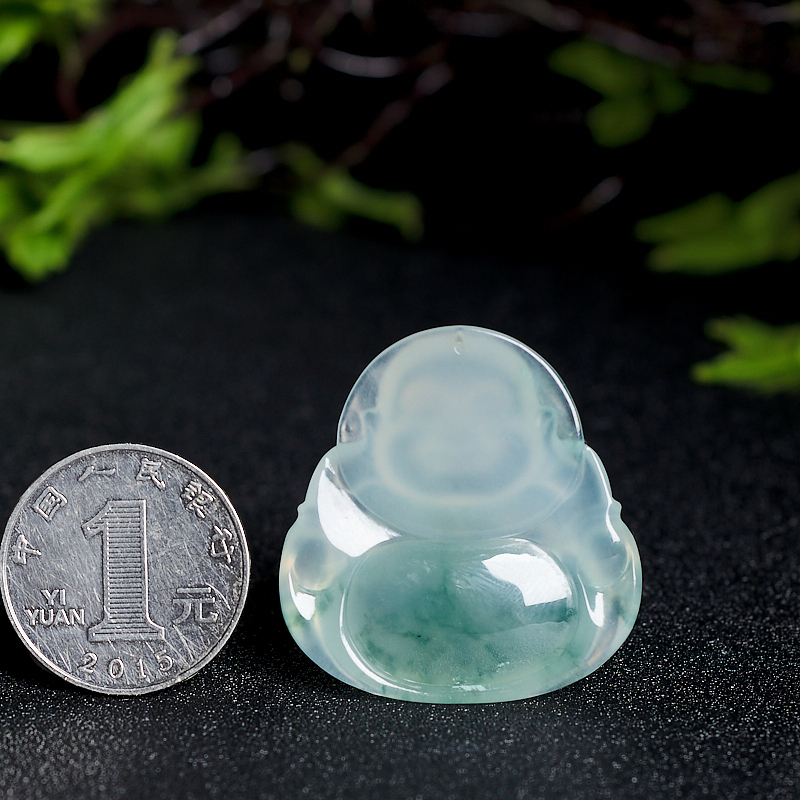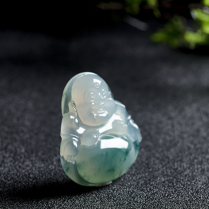 • 糯冰种飘花翡翠弥勒佛吊坠
