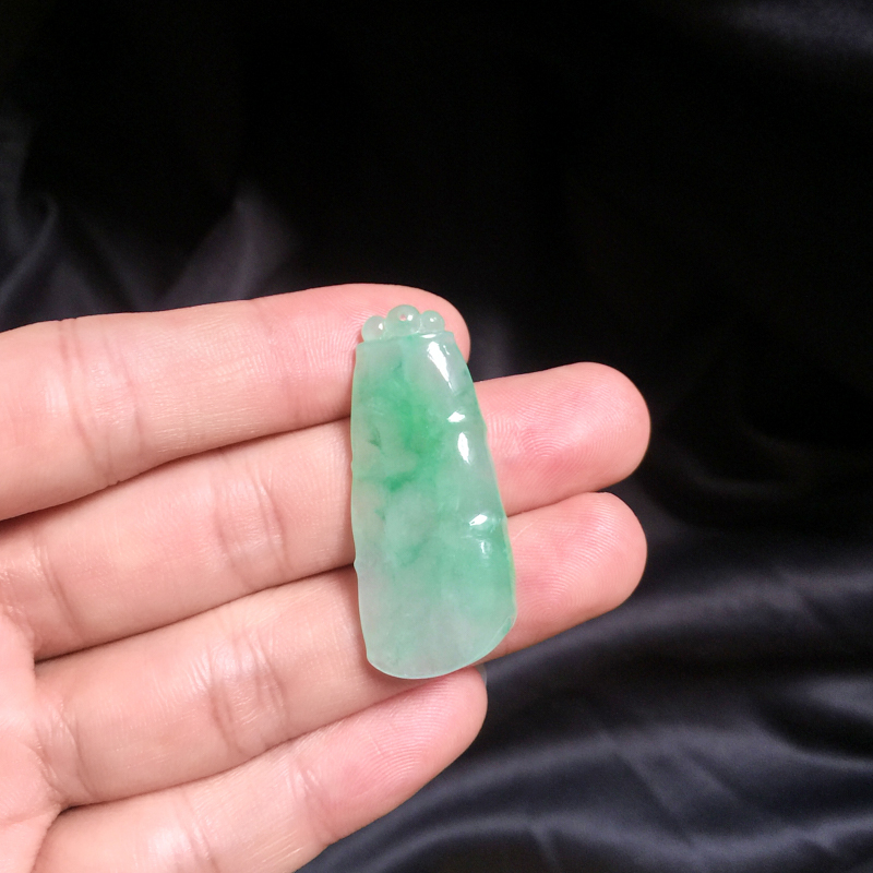 • 糯冰种飘翠翡翠节节高升吊坠