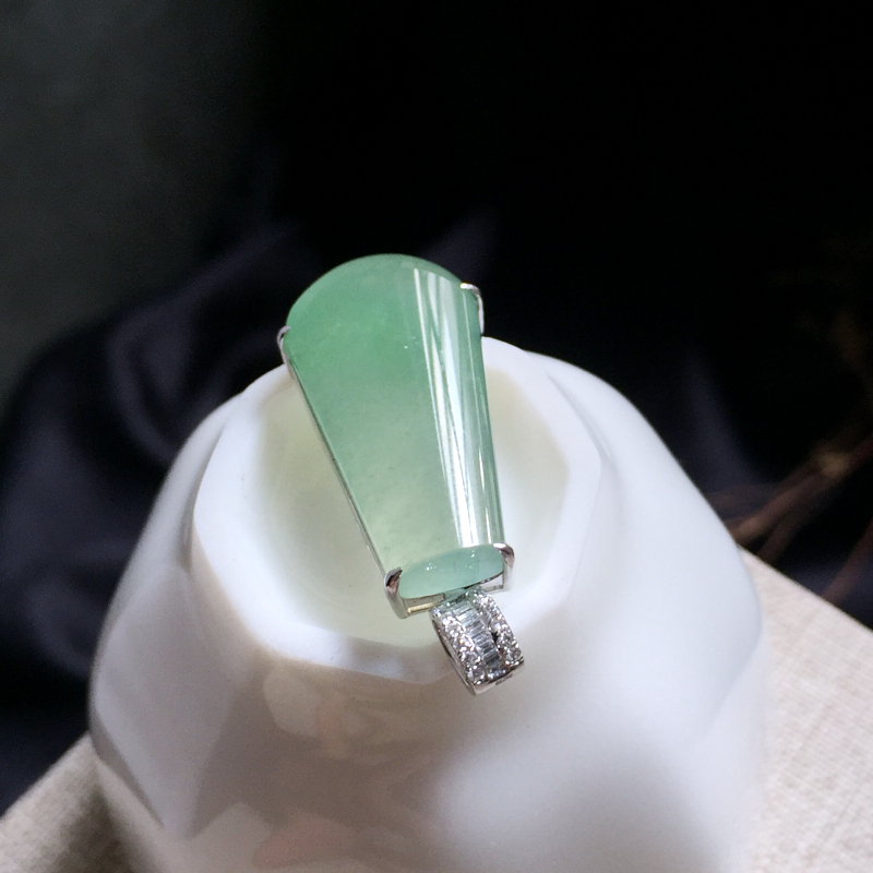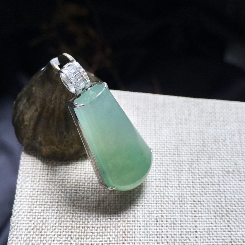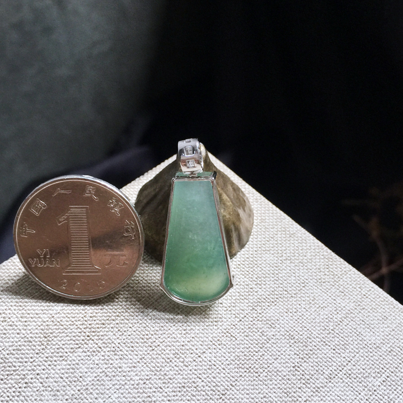 • 18K糯冰种浅绿翡翠无事牌吊坠