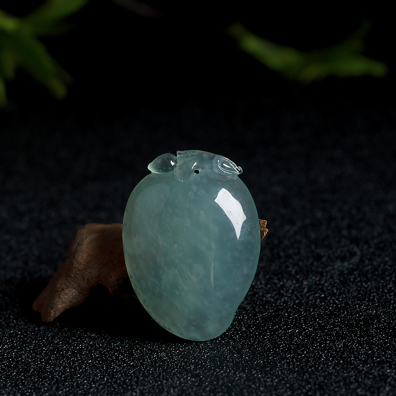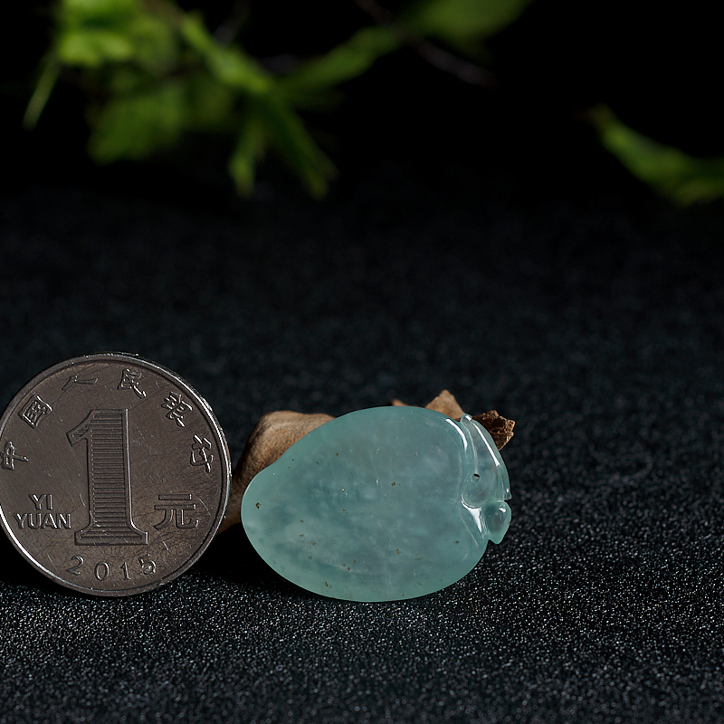 • 糯冰种浅绿翡翠寿桃吊坠