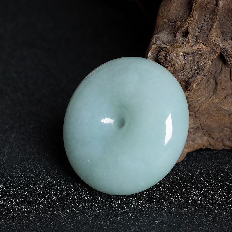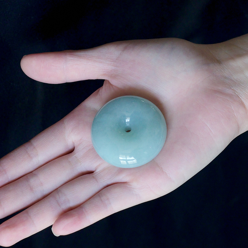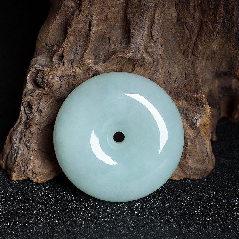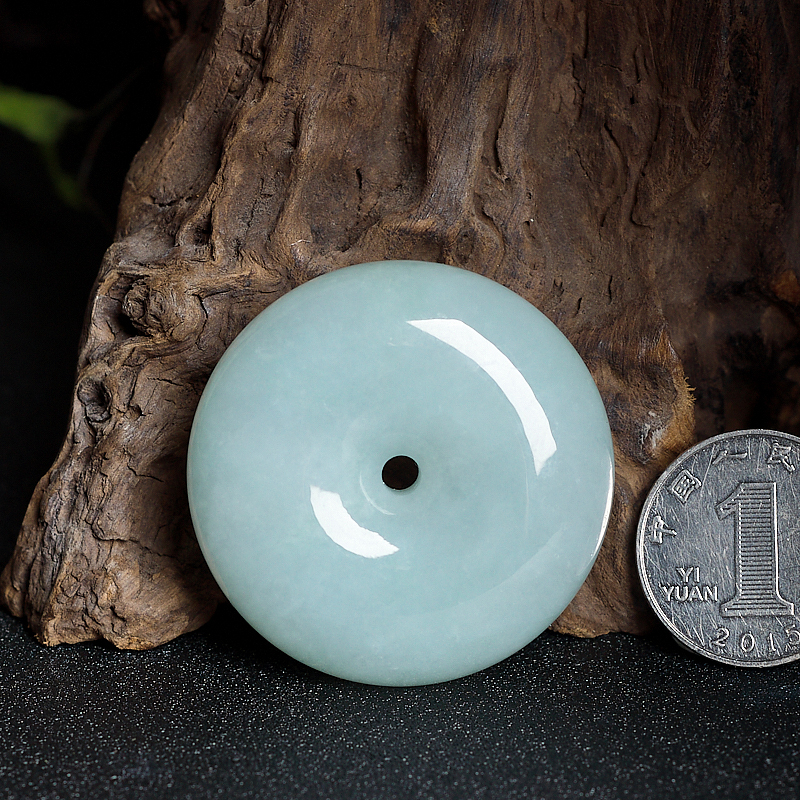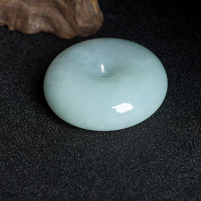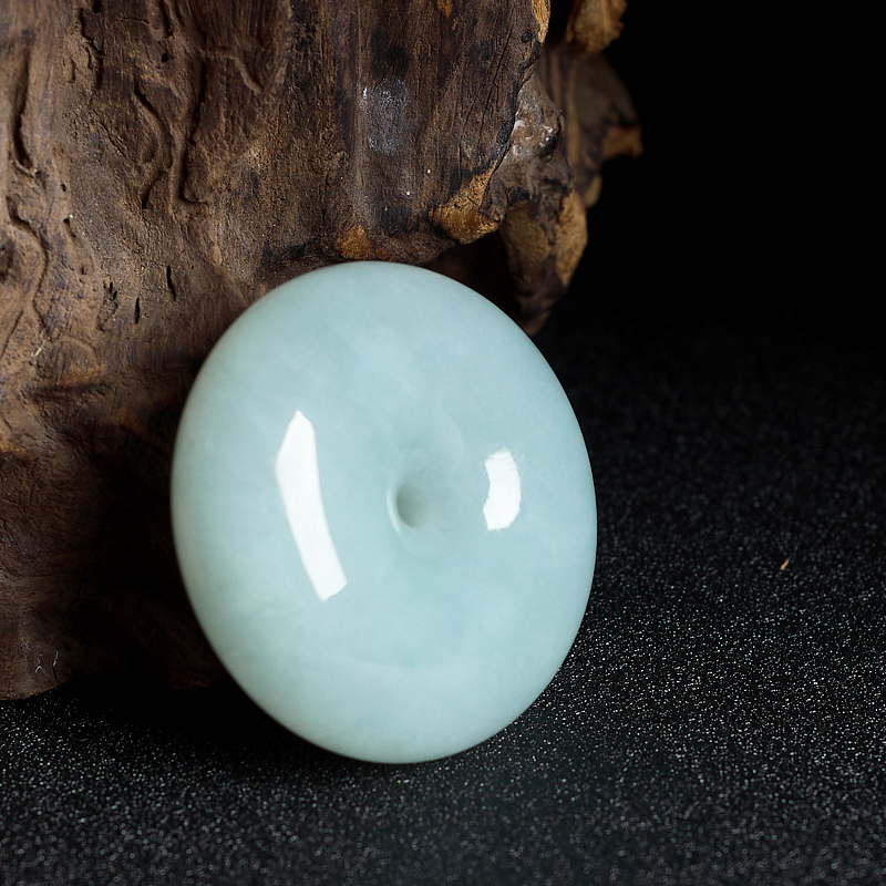 • 糯冰种浅绿翡翠平安扣吊坠