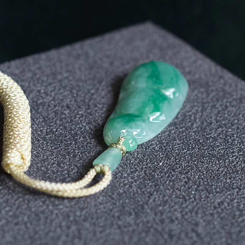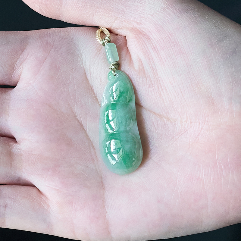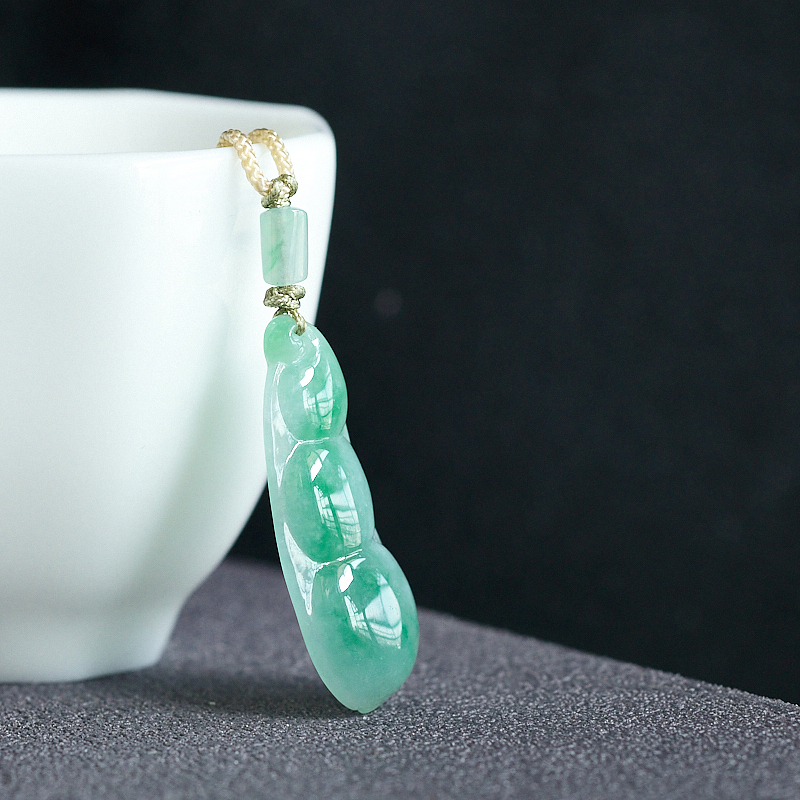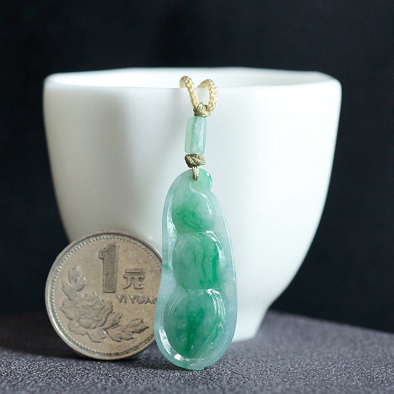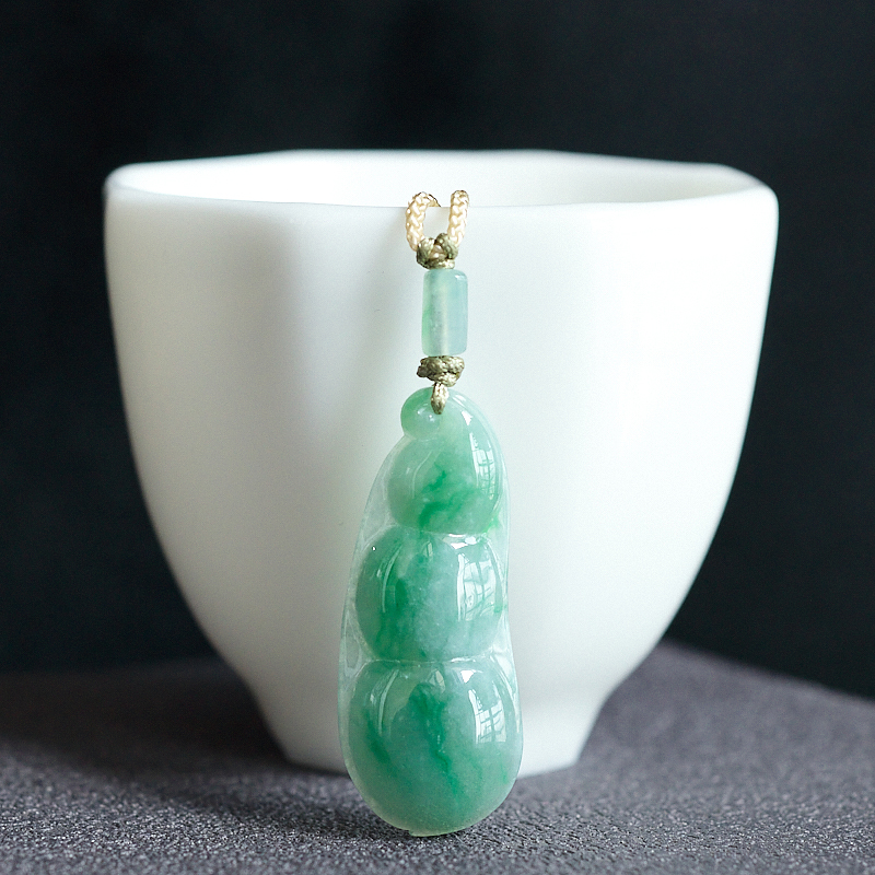 • 糯冰种飘翠翡翠福豆吊坠