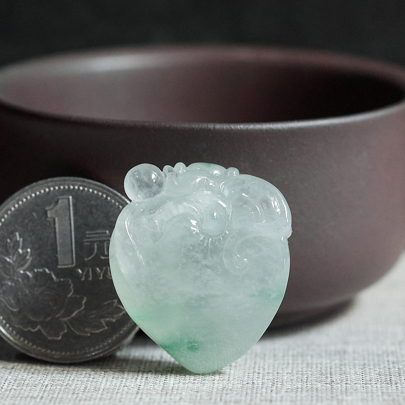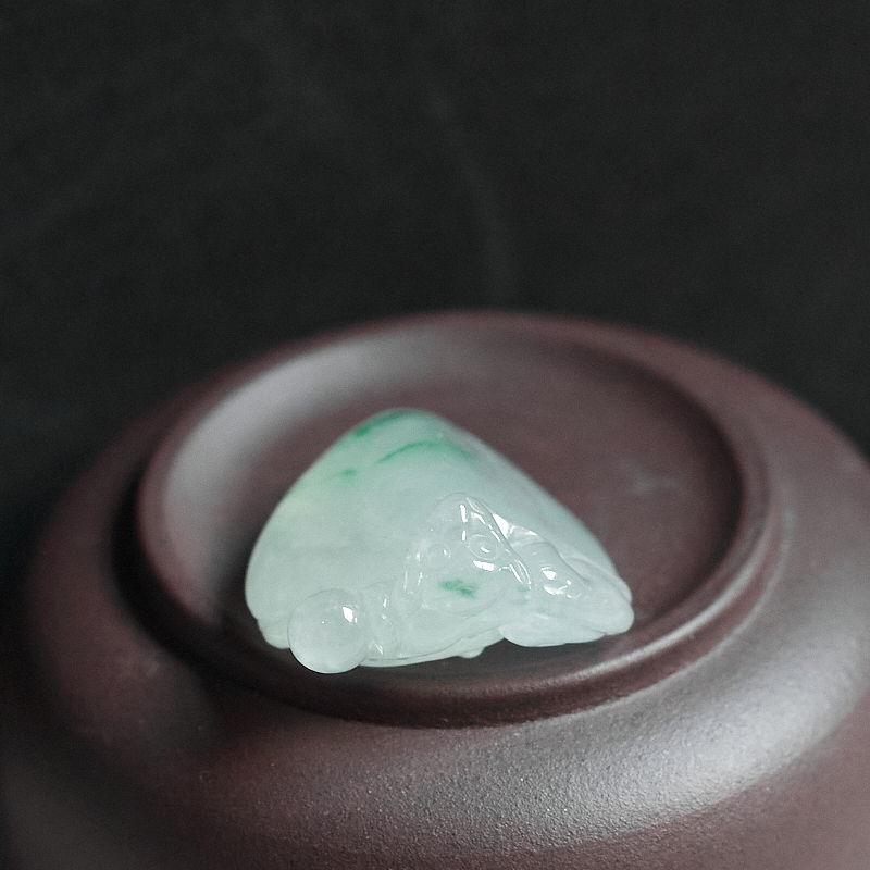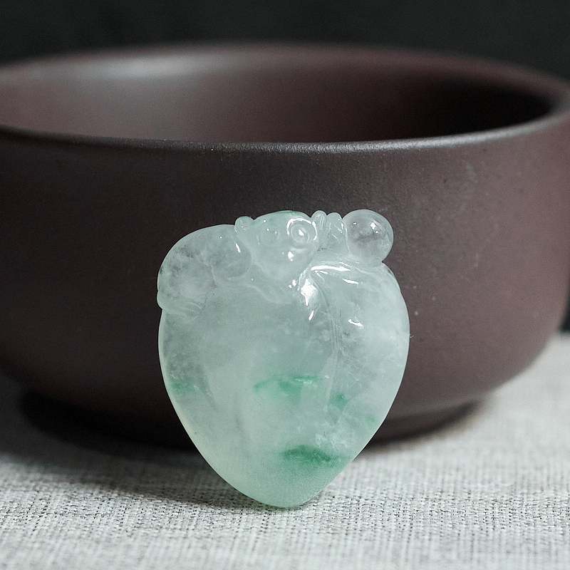 • 糯冰种飘花翡翠灵猴献瑞吊坠
