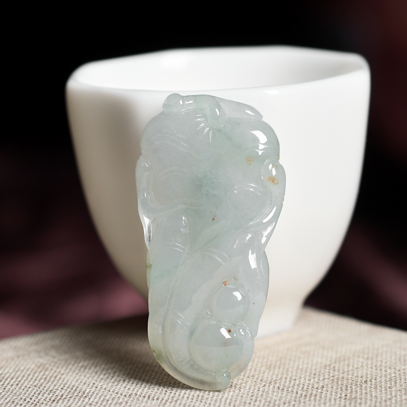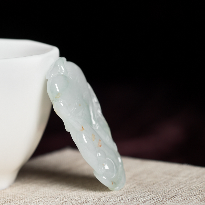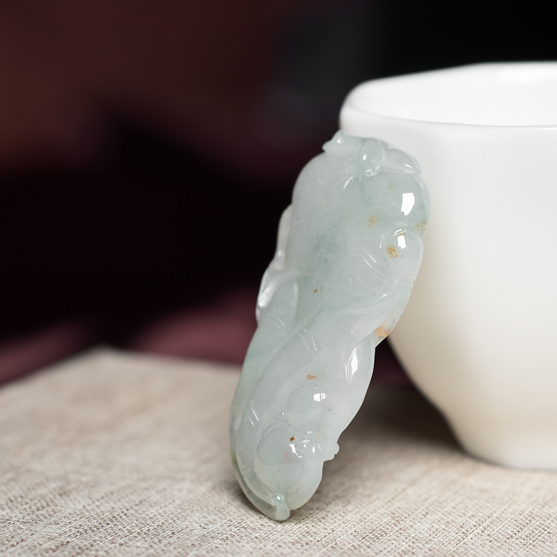 • [名  称] 糯冰种飘翠翡翠人参吊坠