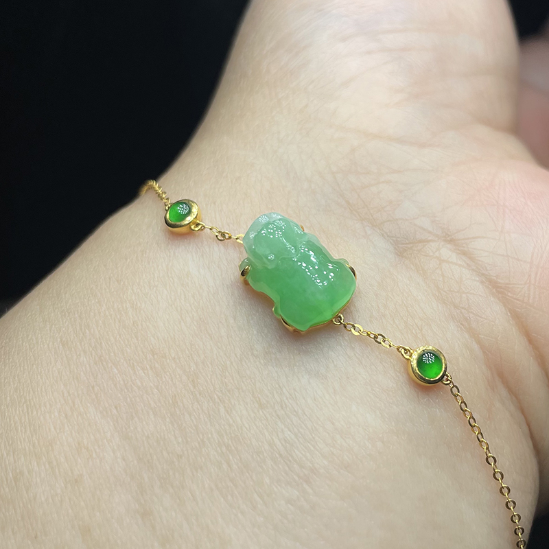 • [名  称] 18k糯冰种飘翠翡翠貔貅手链