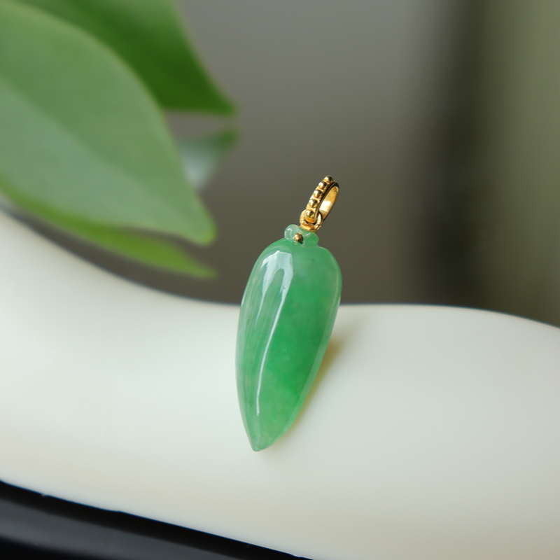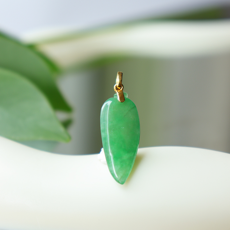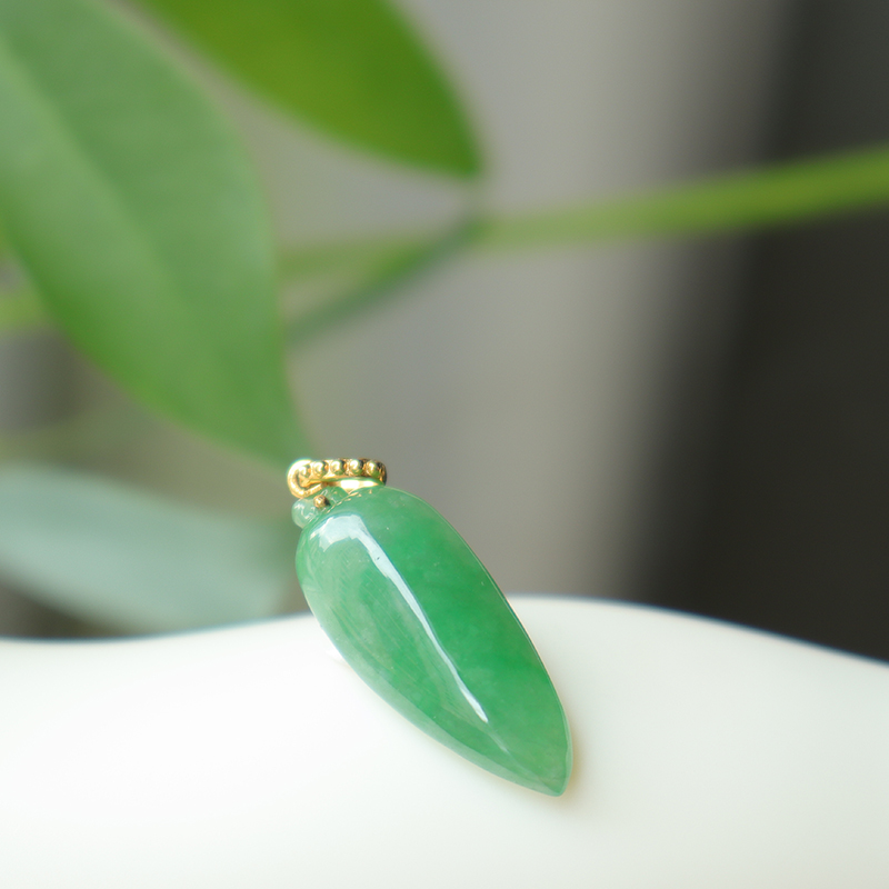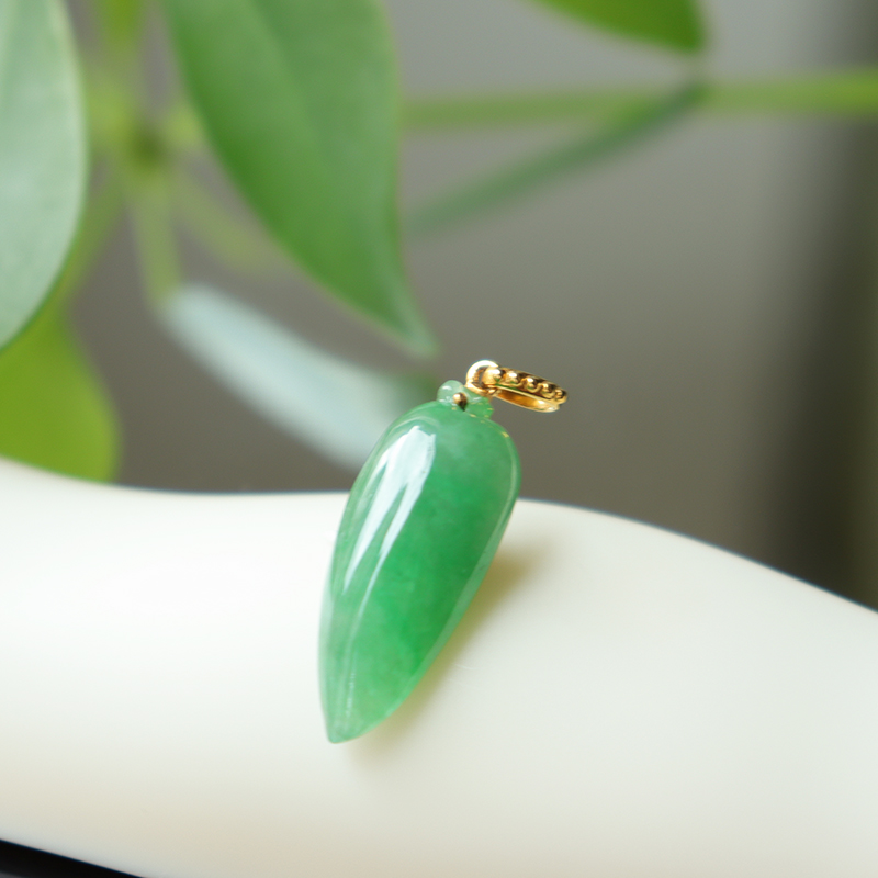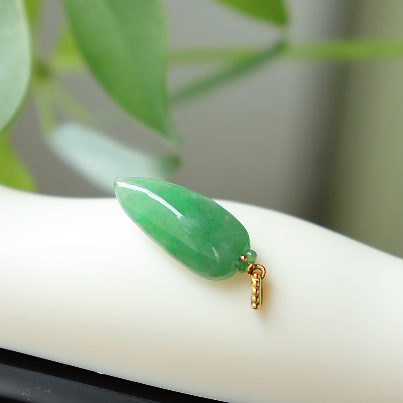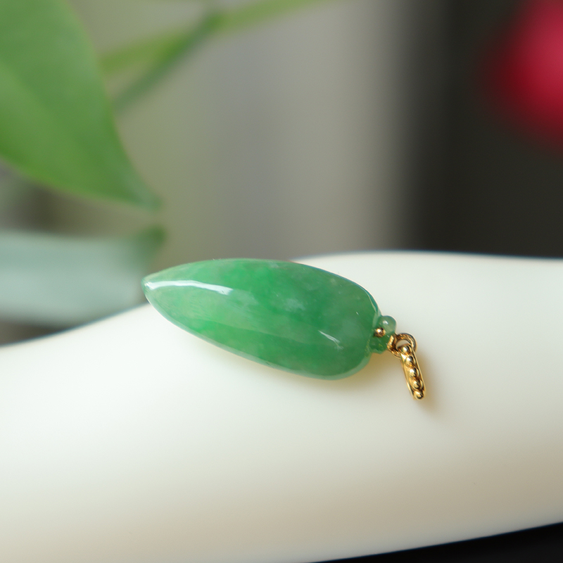 • 18k糯冰种蓝绿翡翠福瓜吊坠