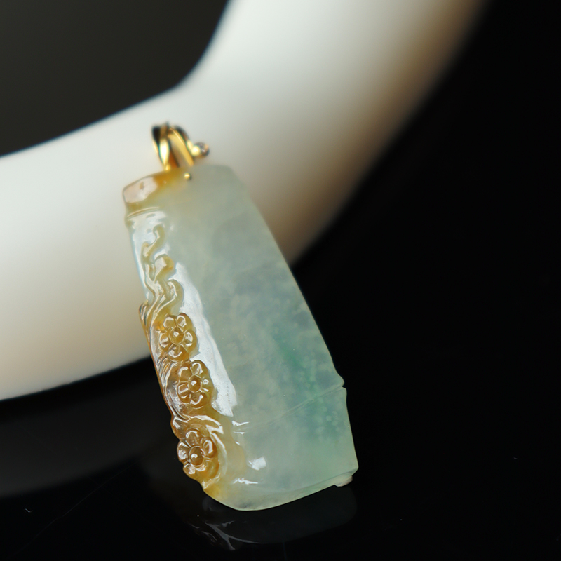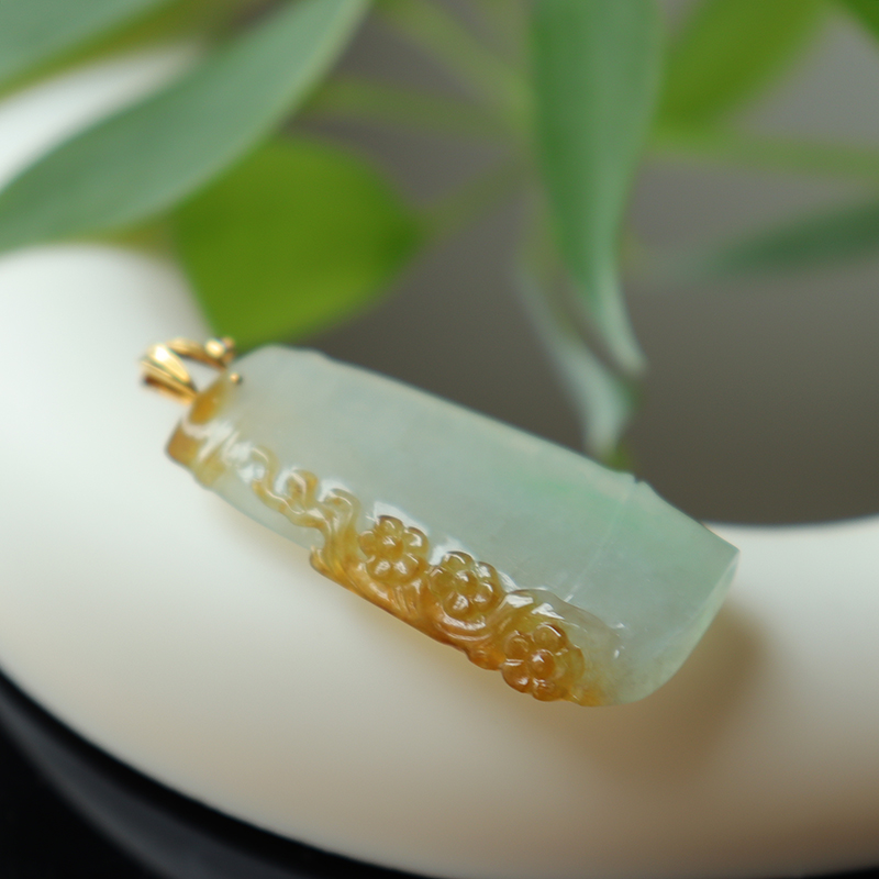 • [名  称] 18k糯冰种黄加绿翡翠节节高吊坠