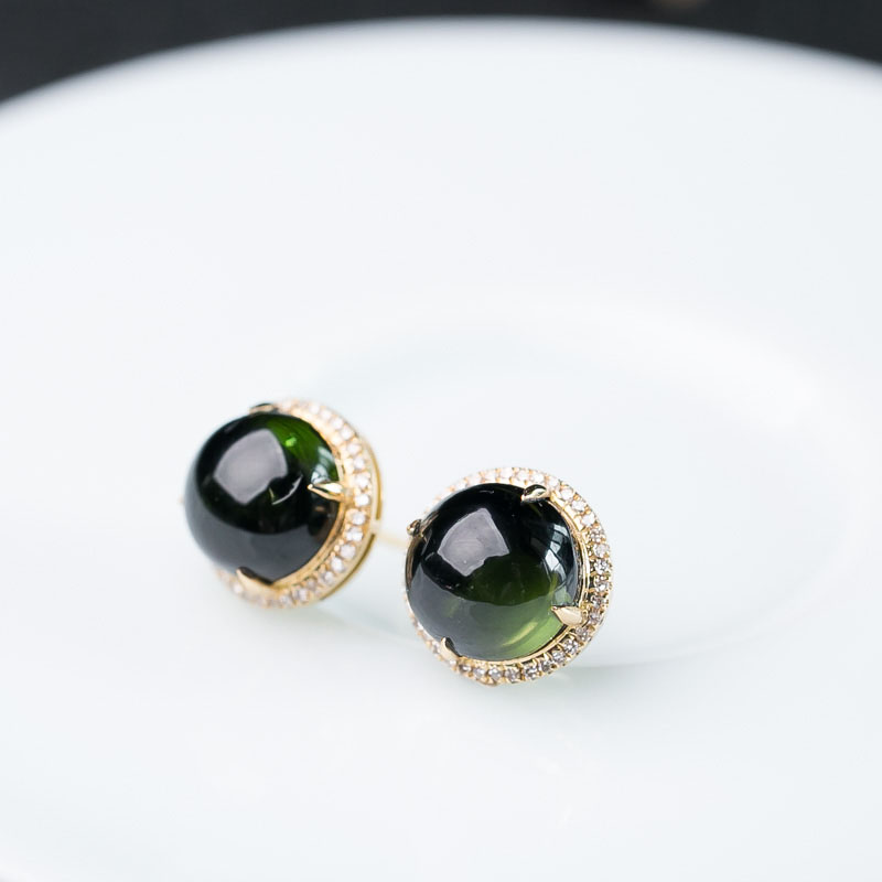 • 18K深绿色碧玺耳钉