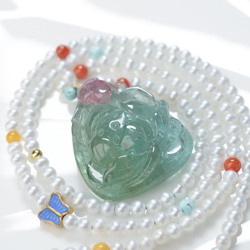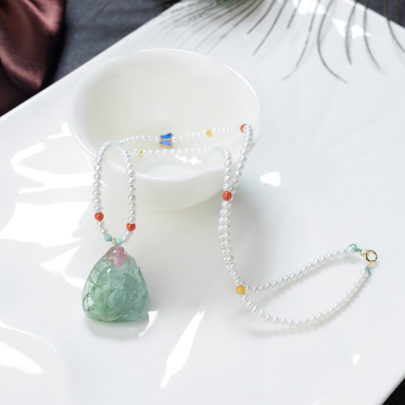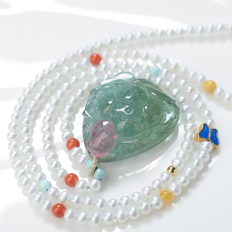配链配石:珍珠、南红、蜜蜡、烧蓝、绿松石、装饰品 18K金扣