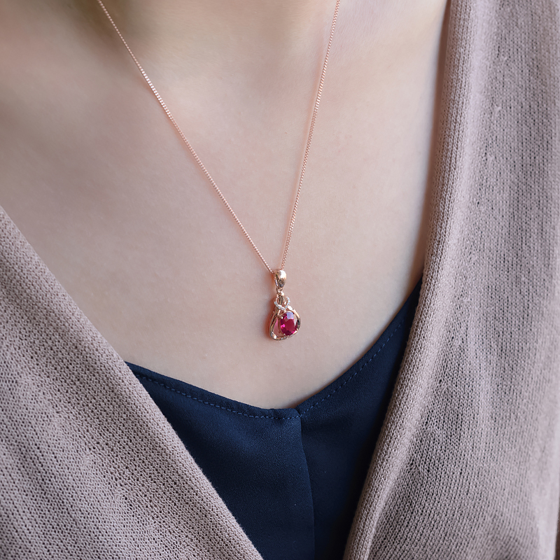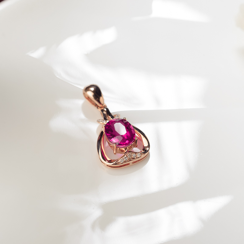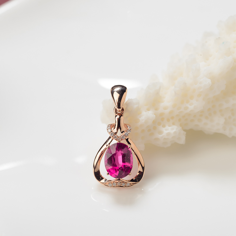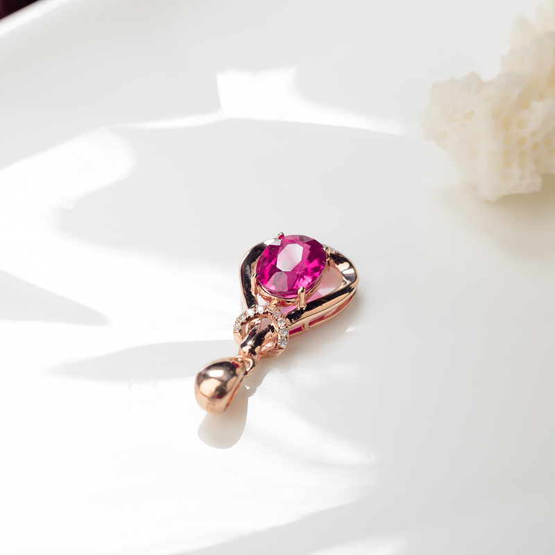 • 18K玫红碧玺吊坠