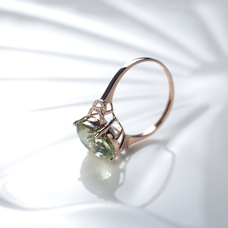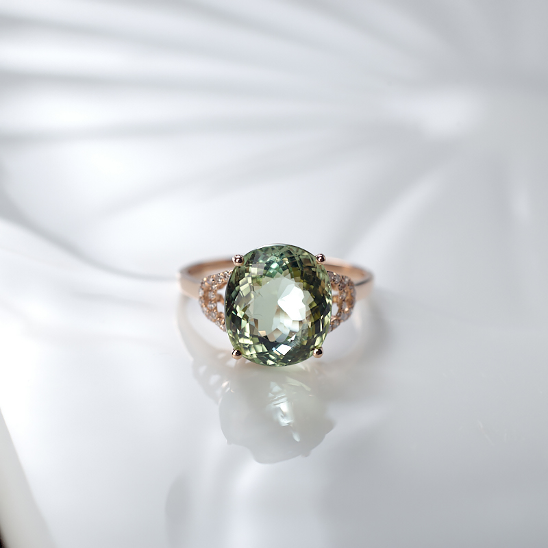 [尺  寸] 主石长10.9mm宽9.2mm厚6.8mm,指圈14#,可改