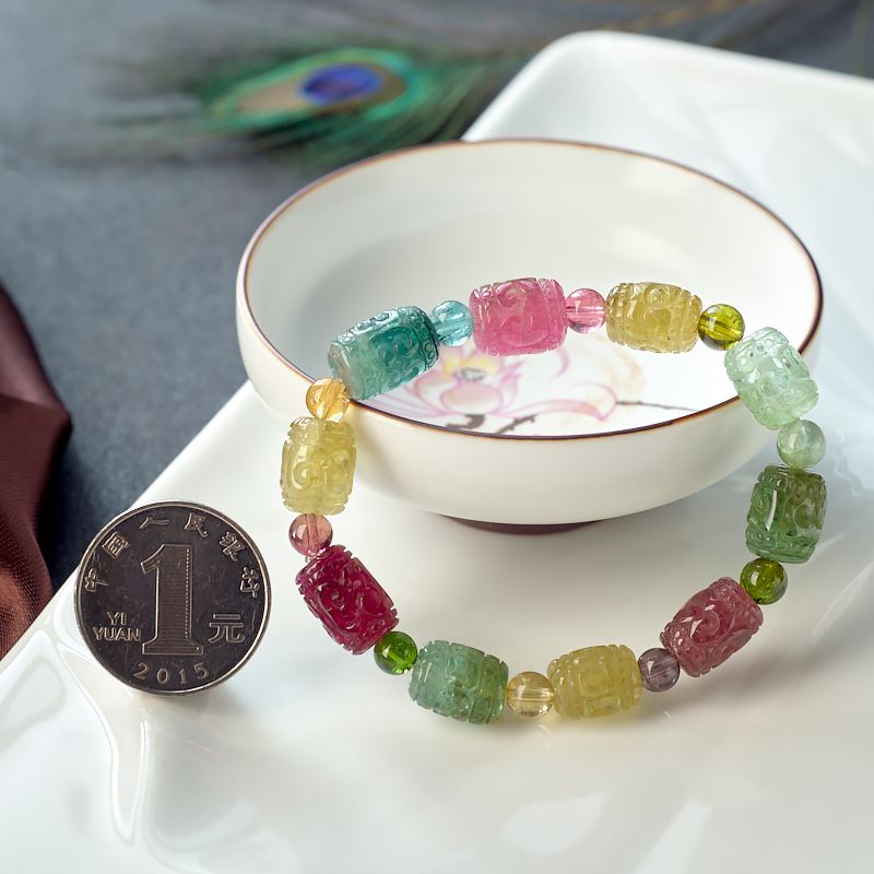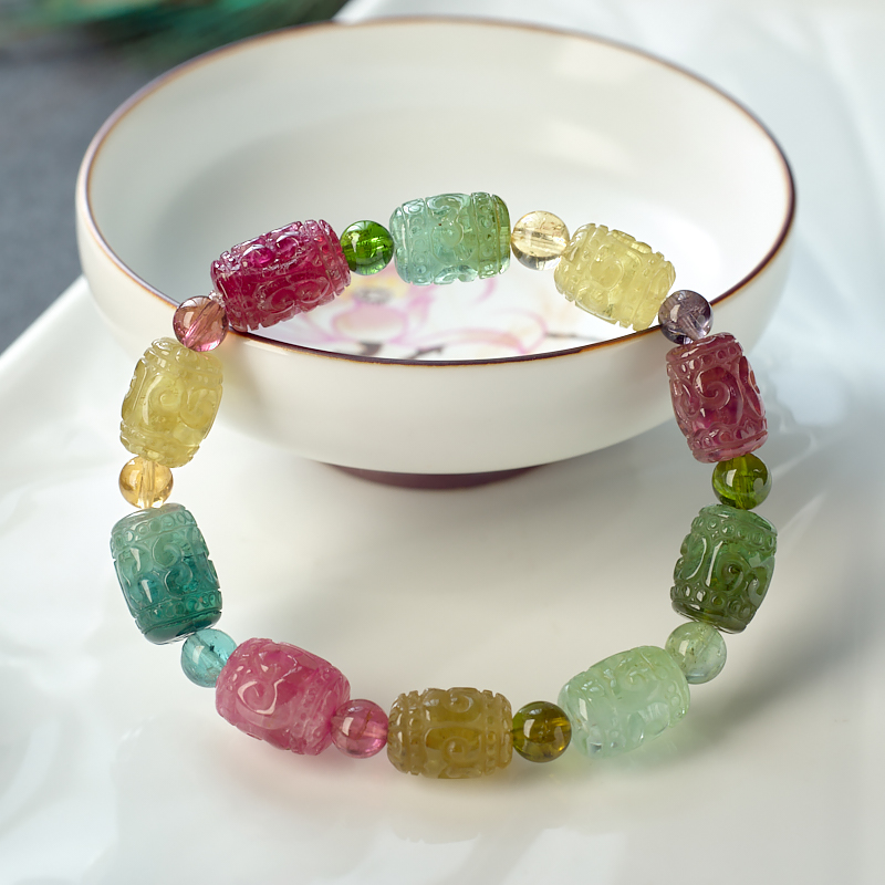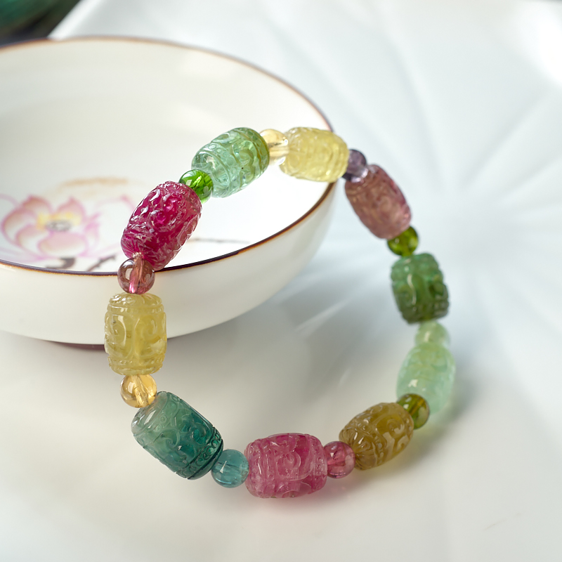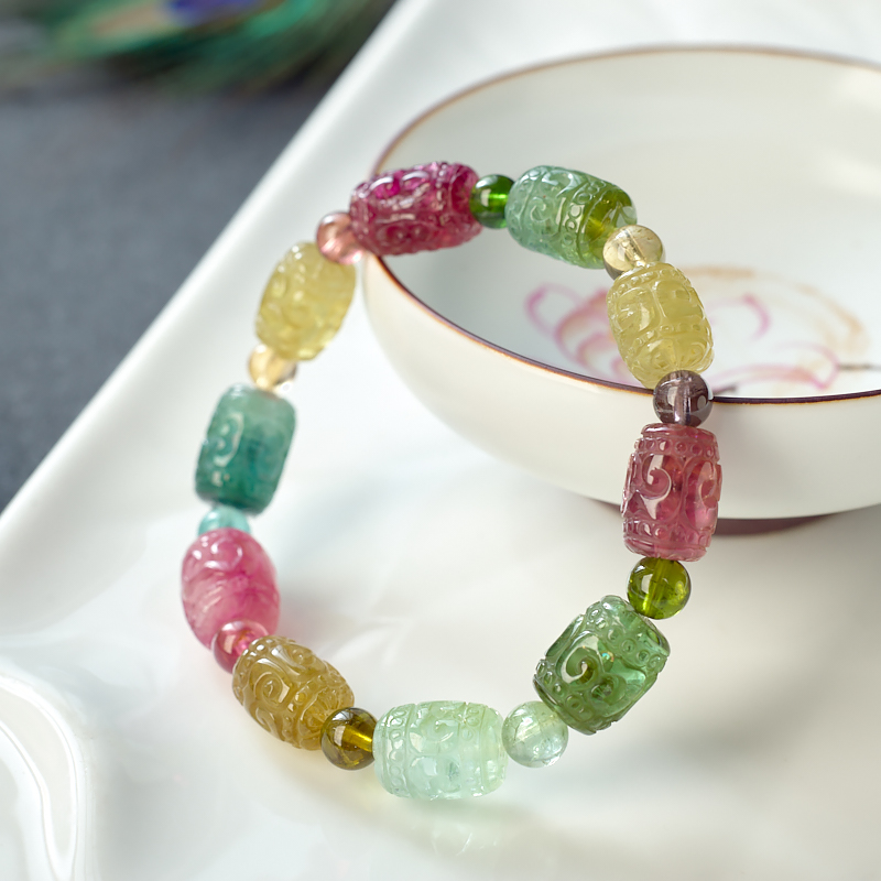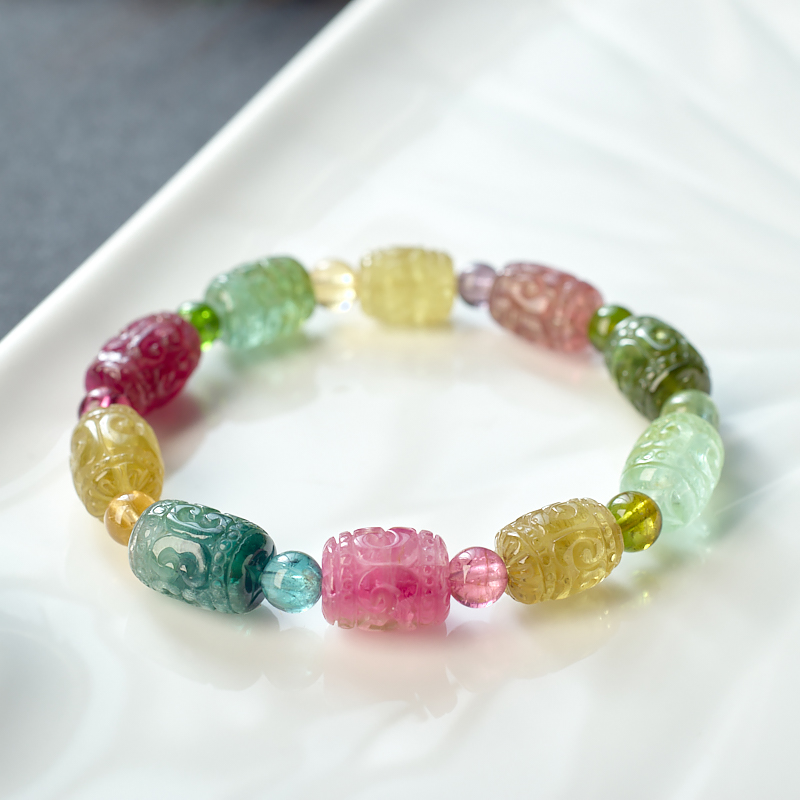 • 碧玺回纹桶珠单圈手串
