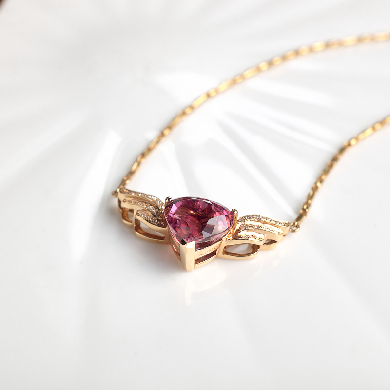 • 18K玫红碧玺心形项链