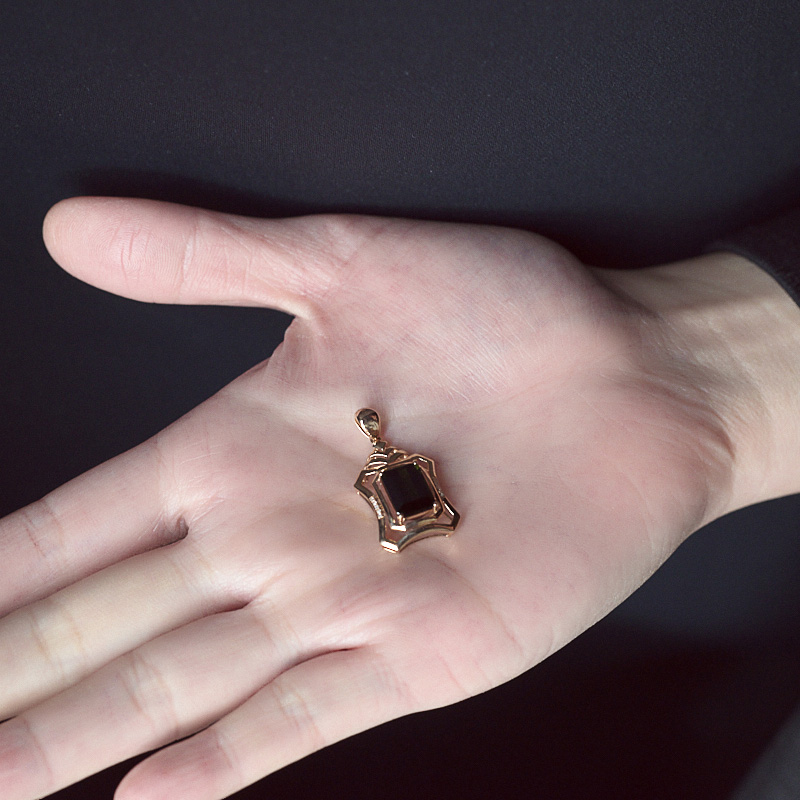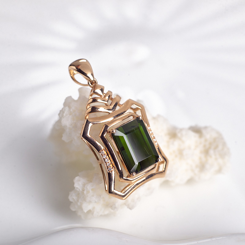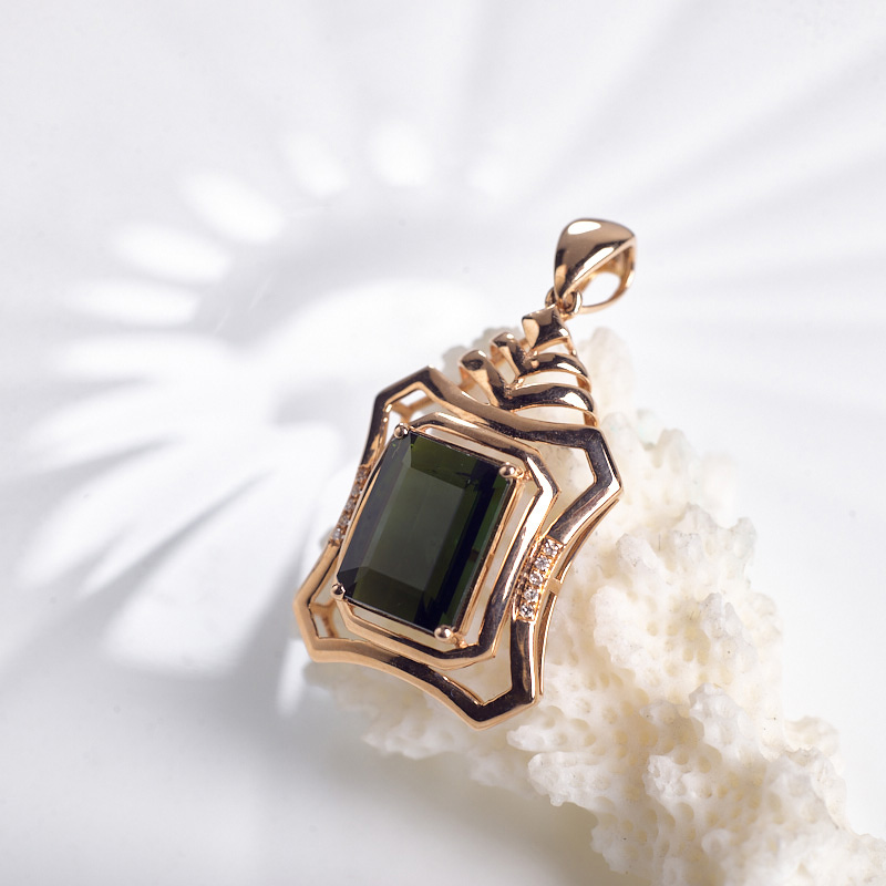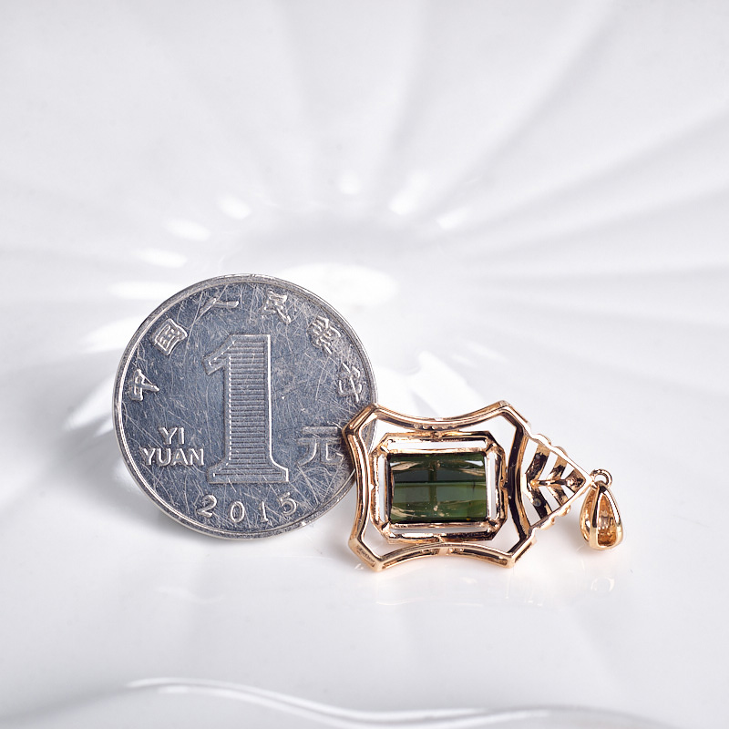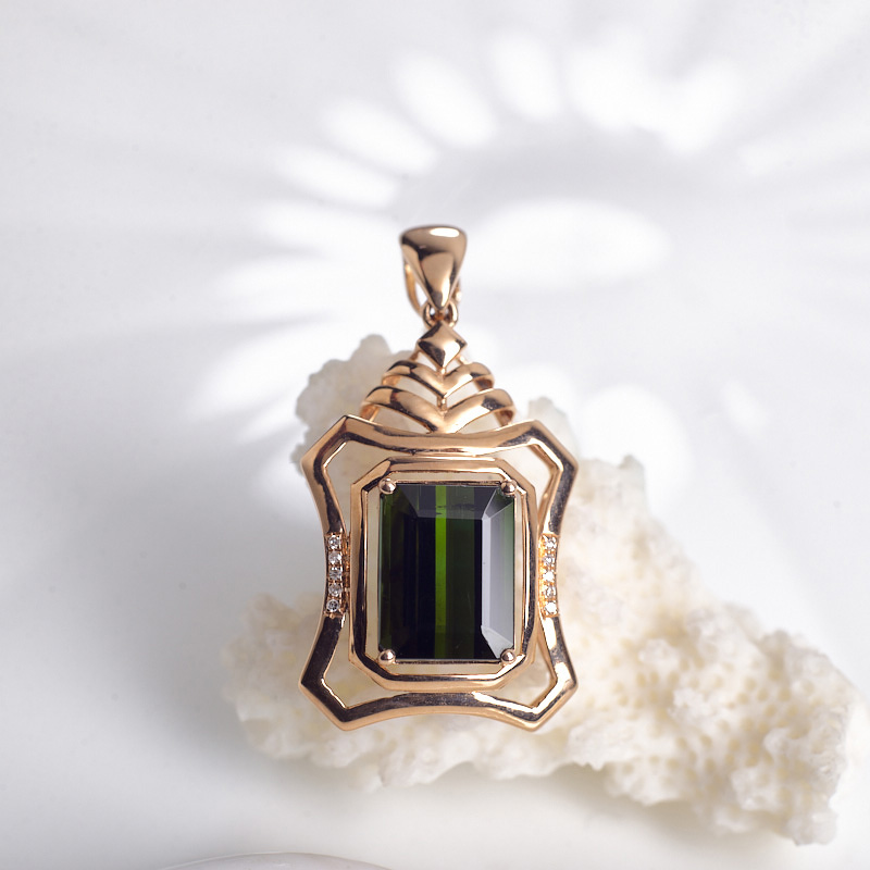 • 18K深绿色碧玺方形吊坠