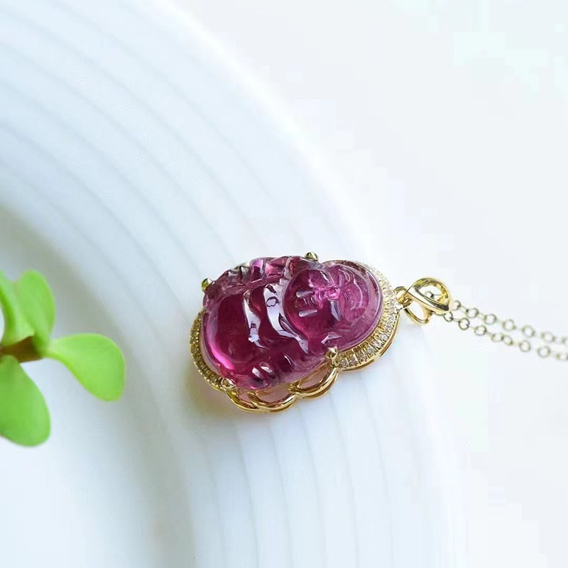 • 18K玫红碧玺弥勒佛吊坠