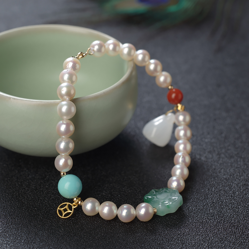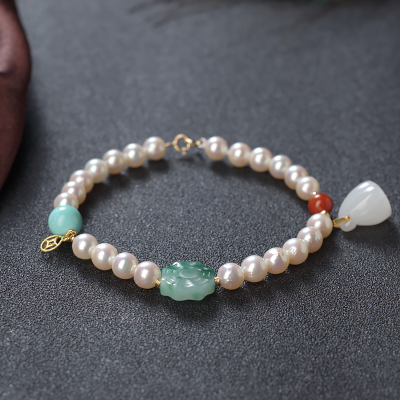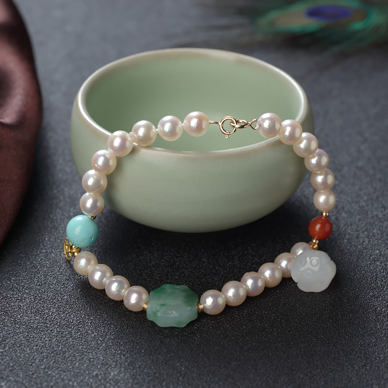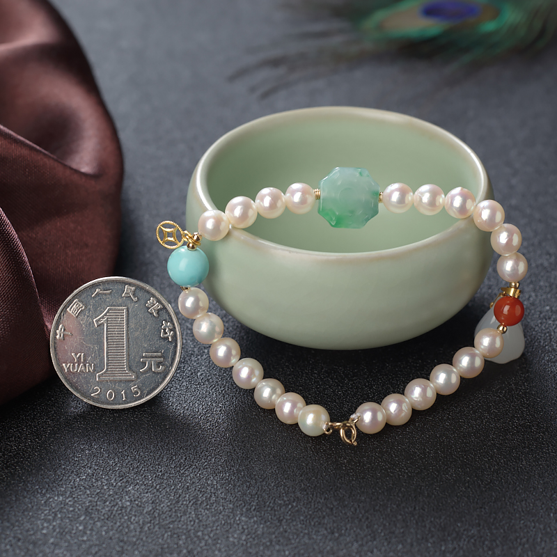 • [产品描述] 配饰:绿松石、翡翠、南红、18K金镶和田白玉