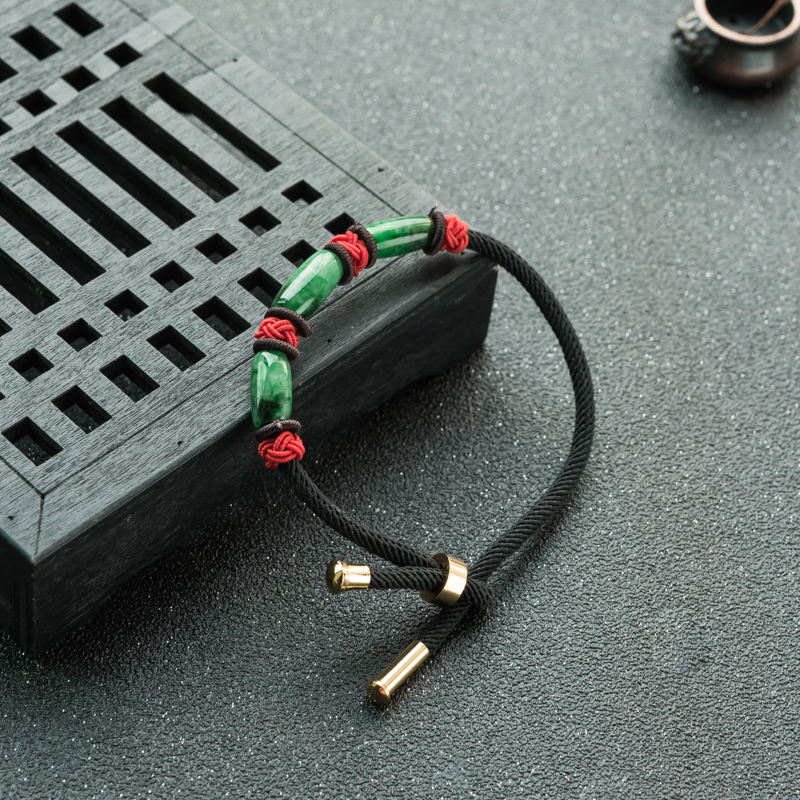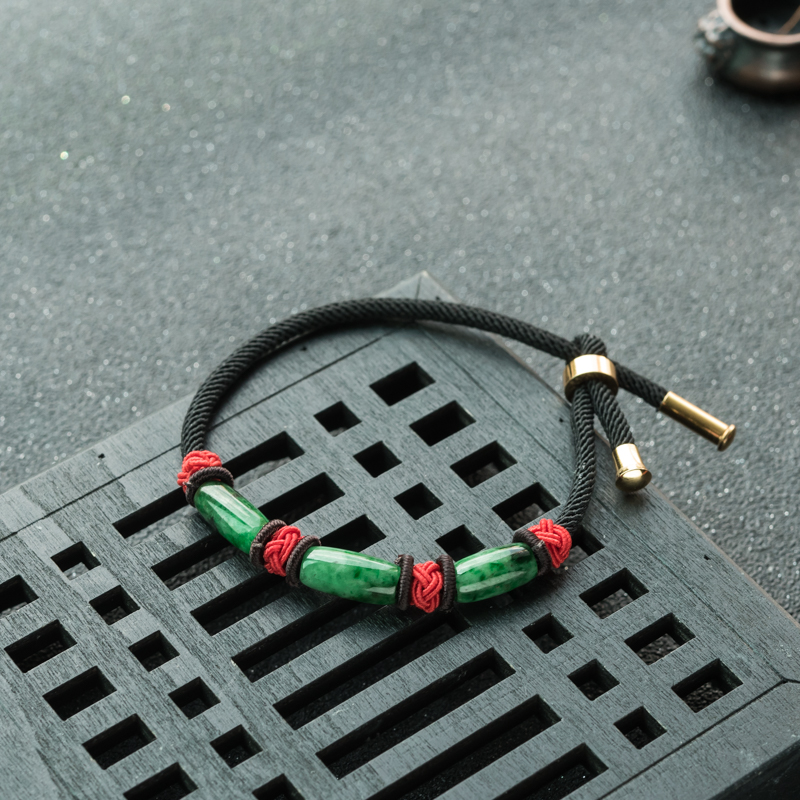 • 6.5mm干青种翡翠桶珠单圈手串