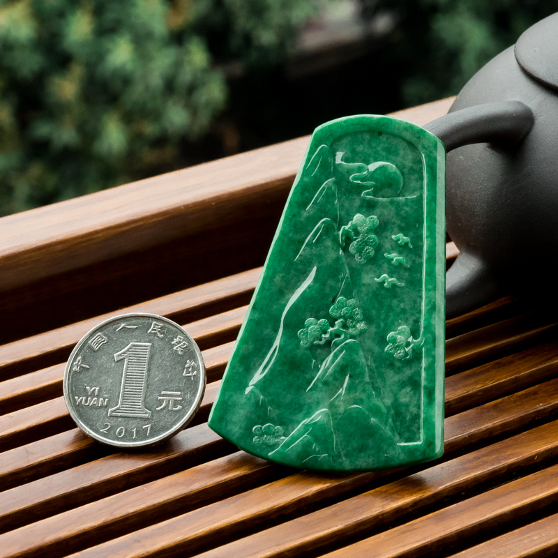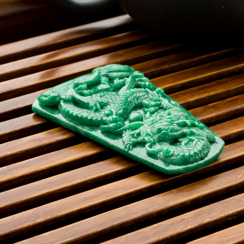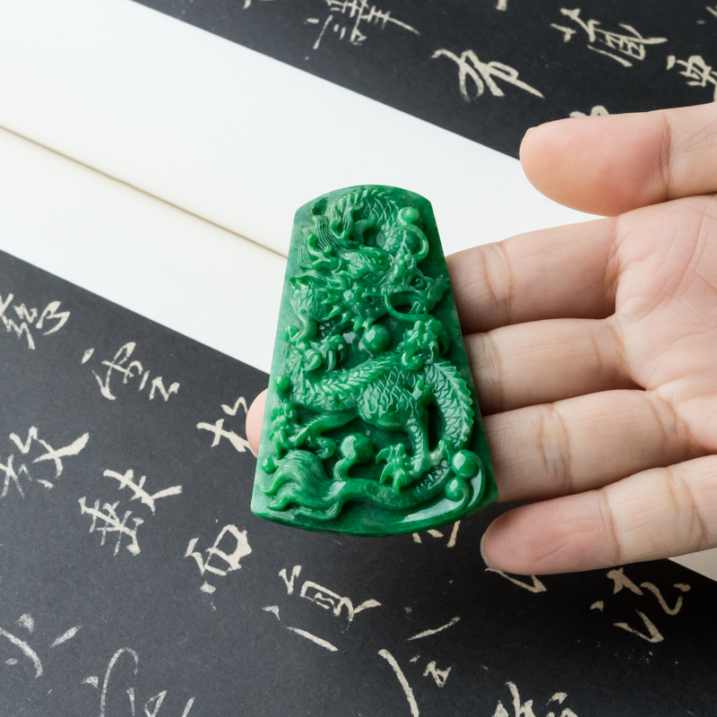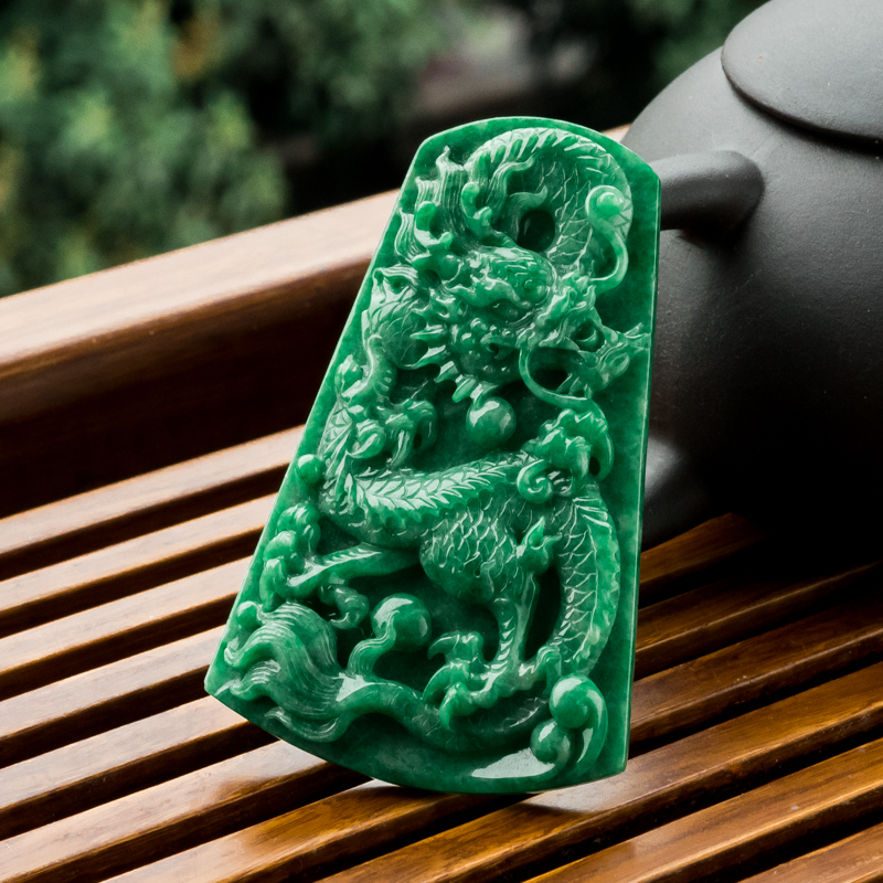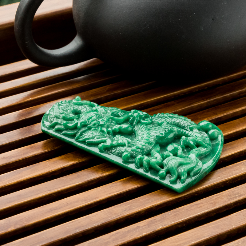 • 花青种翡翠飞龙在天吊坠