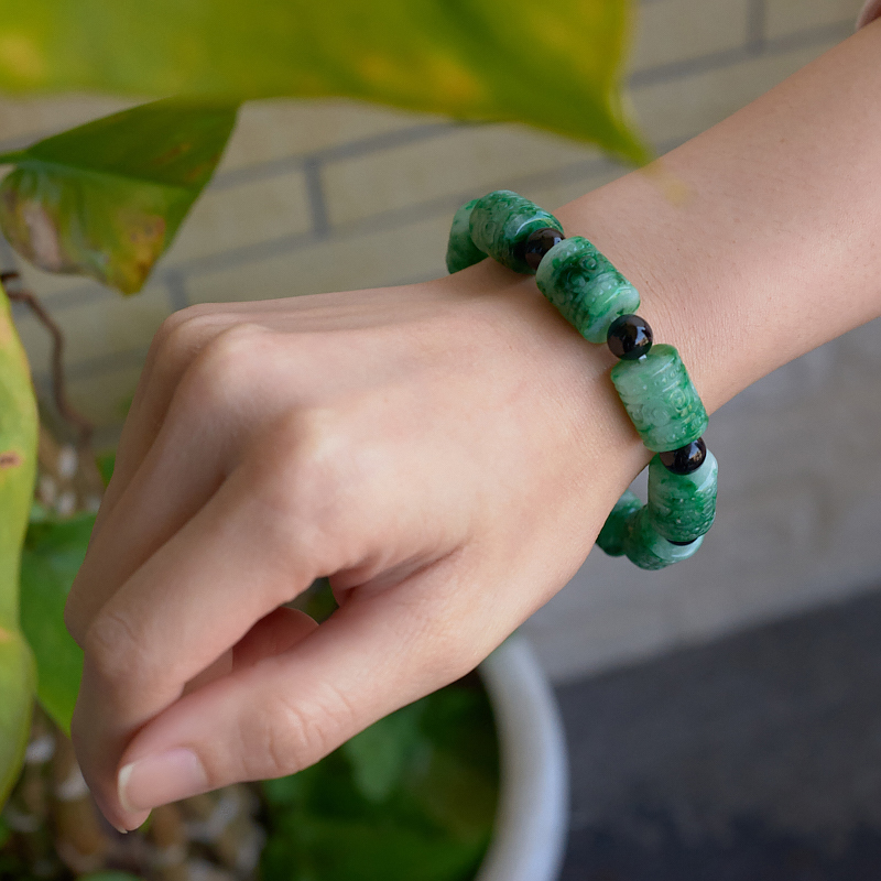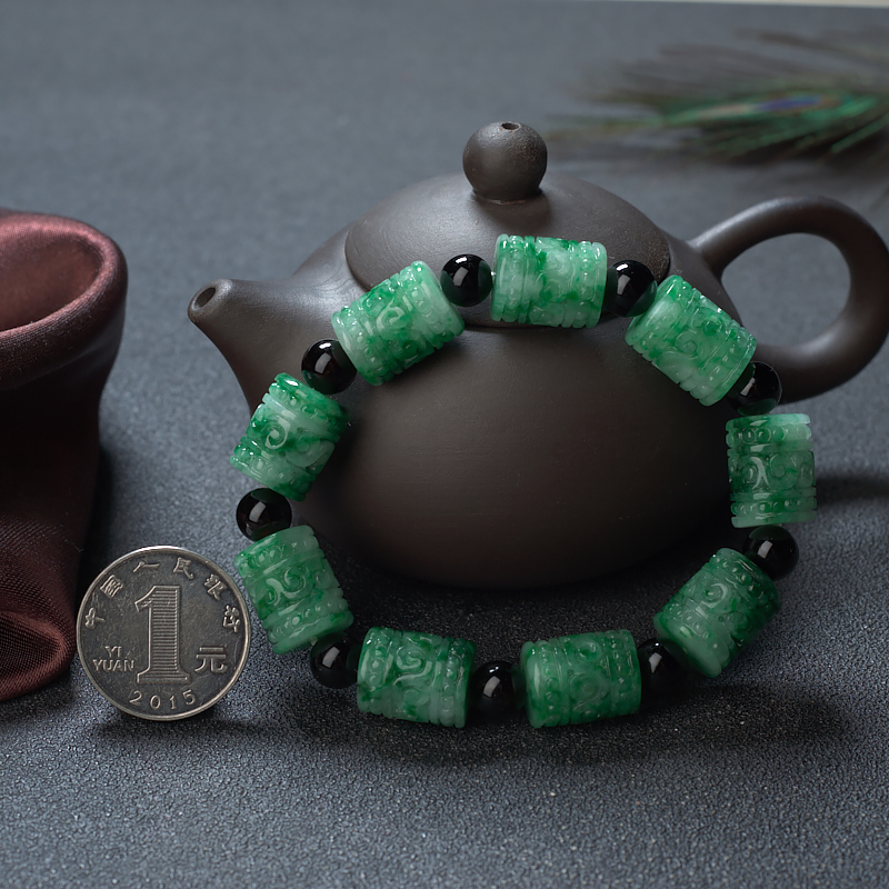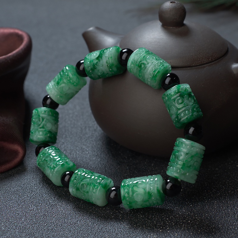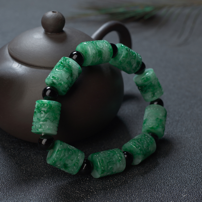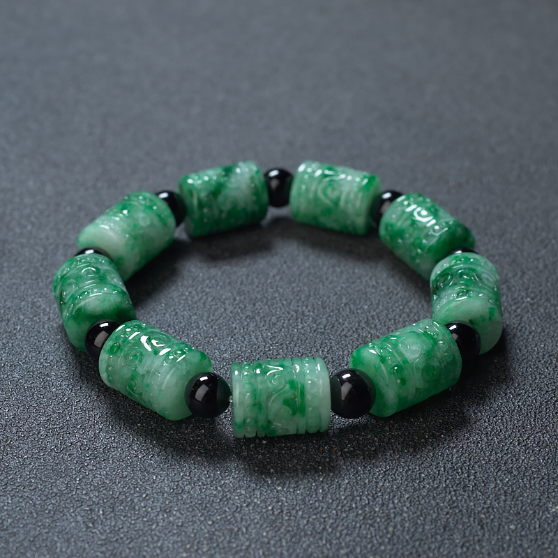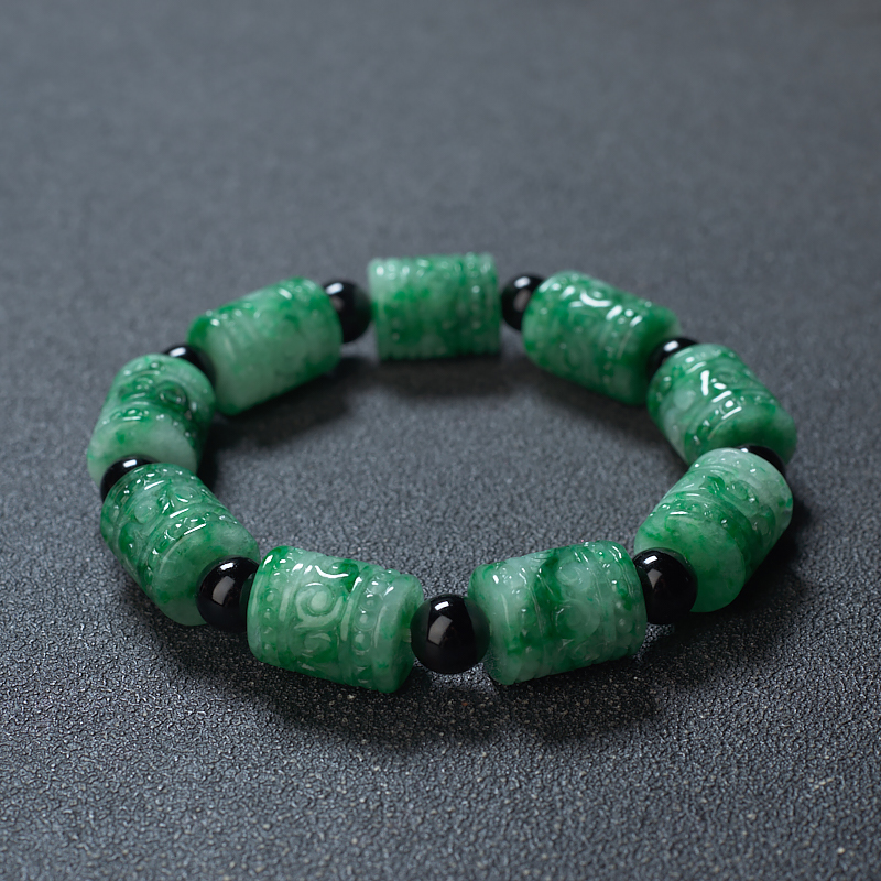 • 花青种翡翠回纹桶珠单圈手串